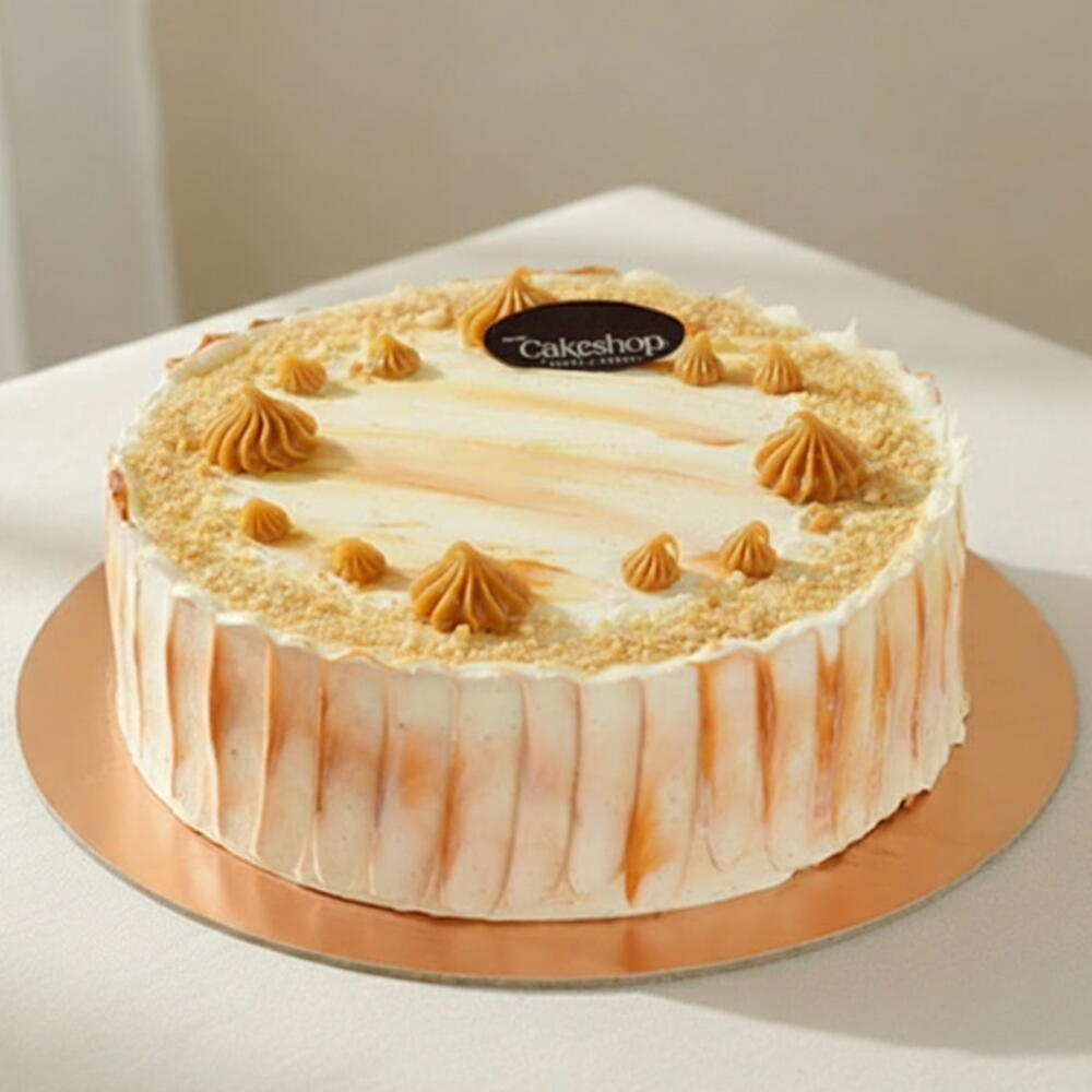 اختبر التلذذ المطلق مع كعكة باتر سكوتش المميزة من مخبزنا. كل قطعة تمزج إسفنجة فانيلا ناعمة ورطبة مع كريمة مخفوقة حريرية وصلصة كراميل منزلية غنية. نوجا الكاجو المحمص المقرمش يضيف قوامًا، بينما كريمة الفانيلا الناعمة وخطوط رقيقة من الكراميل الذهبي على الجوانب تُكمل الحلوى. صُممت هذه الكعكة لإسعاد كل محبي الحلويات.