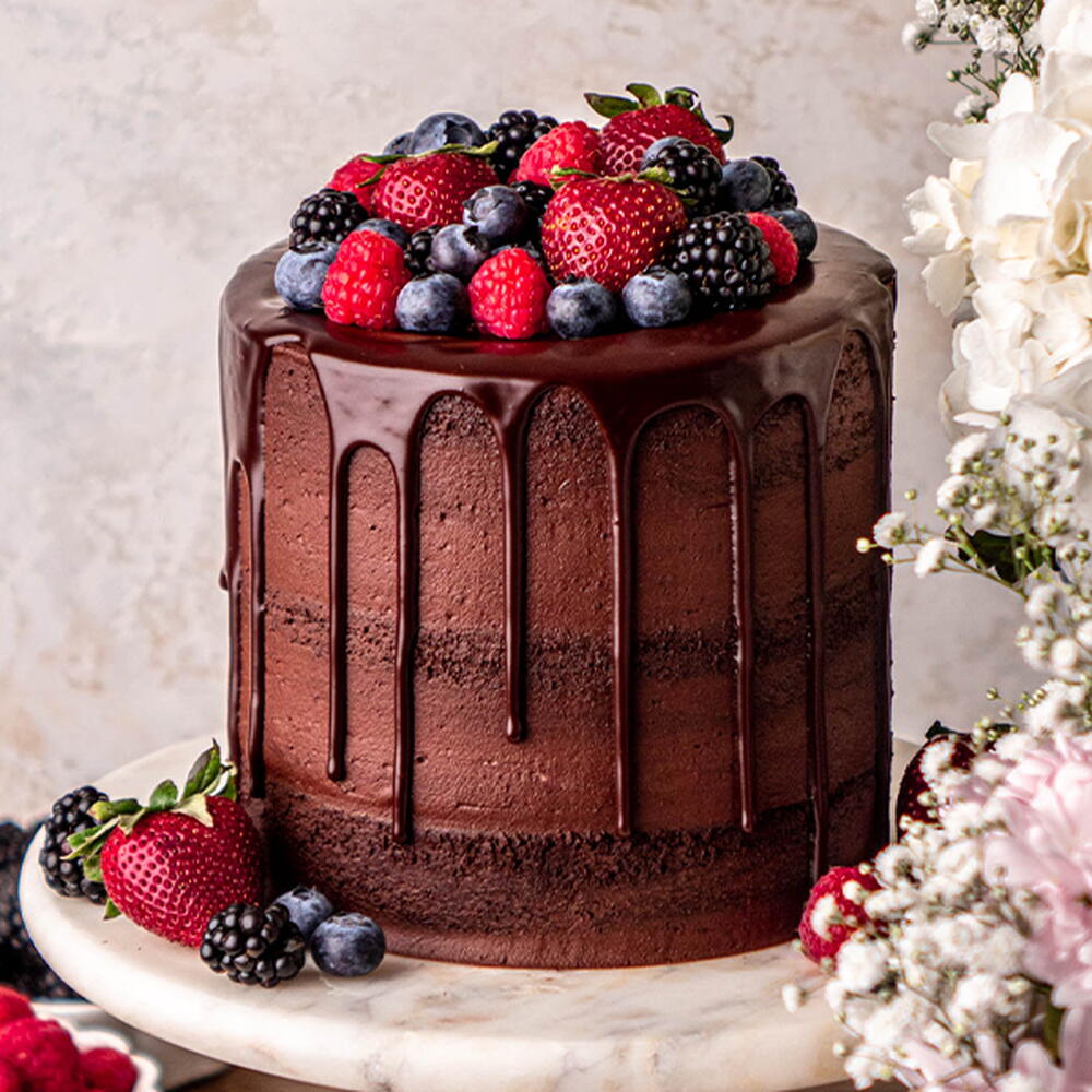 كعكة شوكولاتة بتأثير التنقيط مع فواكه (1.5 كجم)