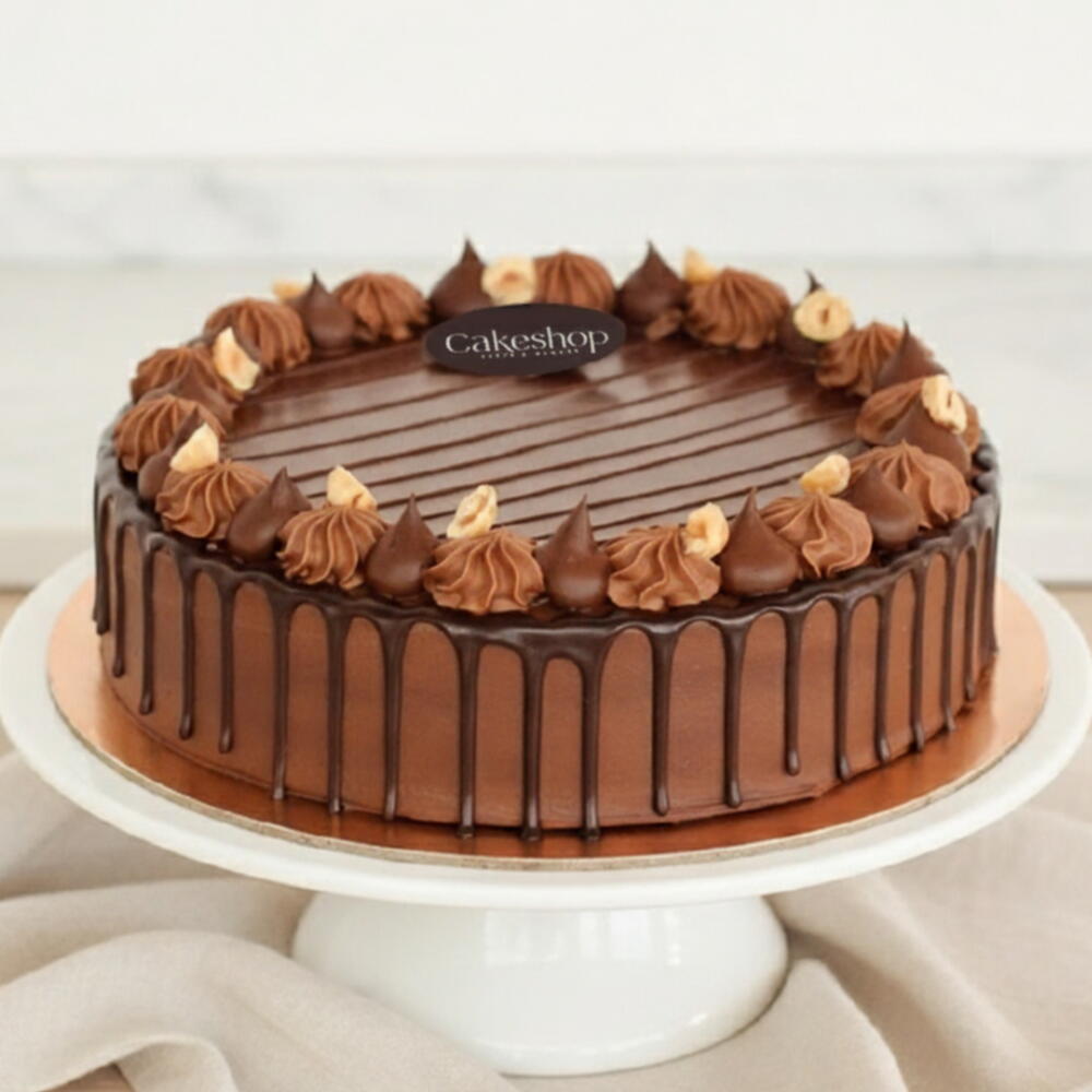 تتميز هذه الكعكة الفاخرة بطبقات من إسفنج الشوكولاتة الداكنة الرطبة المعززة بمعجون بندق ناعم وغاناش شوكولاتة متوسّط إلى داكن متوازن تمامًا. مصنوعة من شوكولاتة حقيقية وبندق فاخر، تقدّم تجربة شوكولاتة غنيّة وعميقة ومشبعة دون حلاوة مفرطة أو مرارة. مغطاة بطبقة علوية لامعة من غاناش الشوكولاتة الداكنة، تبرز هذه الكعكة بنكهة أنيقة، وقوام فاخر، وجاذبية خالدة.