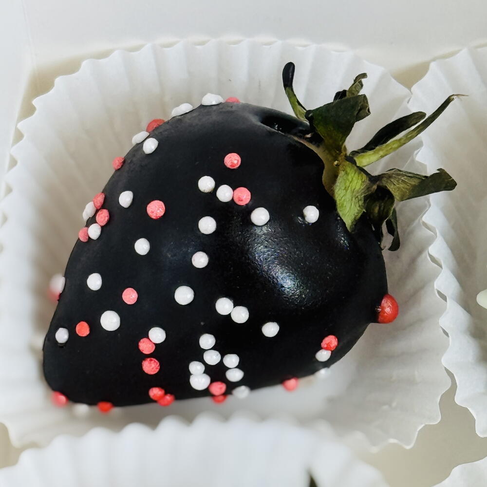 فراولة طازجة شوكولاتة داكنة (كتلة الكاكاو، سكر، زبدة الكاكاو، مستحلب (ليسيثين الصويا)، نكهة فانيليا طبيعية) شوكولاتة بيضاء (سكر، زبدة الكاكاو، مواد صلبة من الحليب، مستحلب (ليسيثين الصويا)، نكهة فانيليا) رشات سكرية زبدة أو زيت جوز الهند (اختياري، لملمس ناعم)