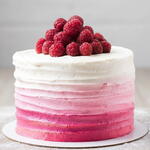 vanilla sponge, raspberry filling, raspberry topping/cubes, wheat flour, sugar, milk/milk derivatives, butter (or equivalent fat), food colouring