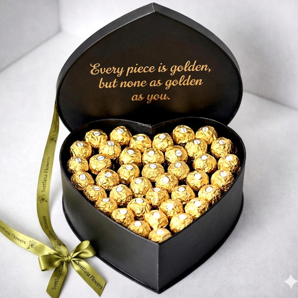 صندوق قلب ذهبي منتصف الليل 41 قطعة شوكولاتة فيريرو روشيه هدية فاخرة الإمارات العربية المتحدة