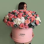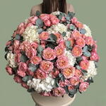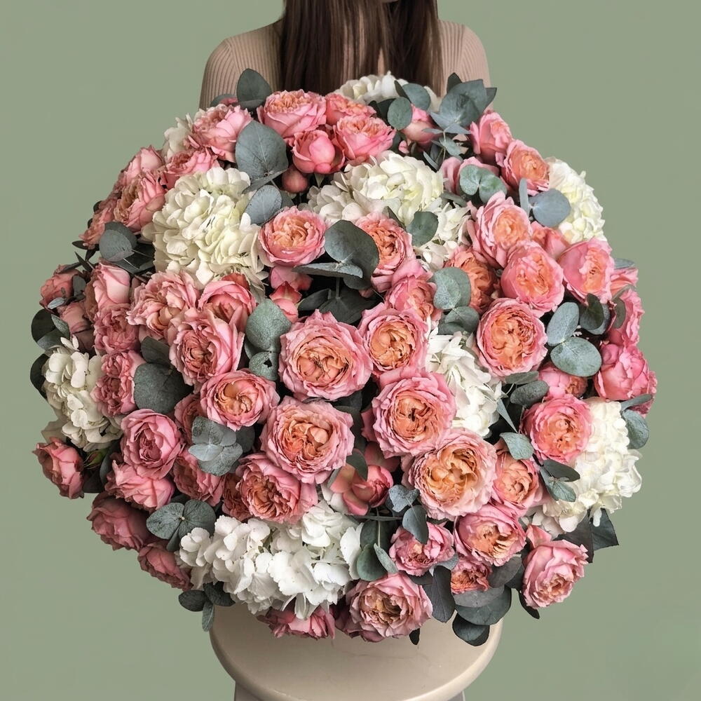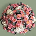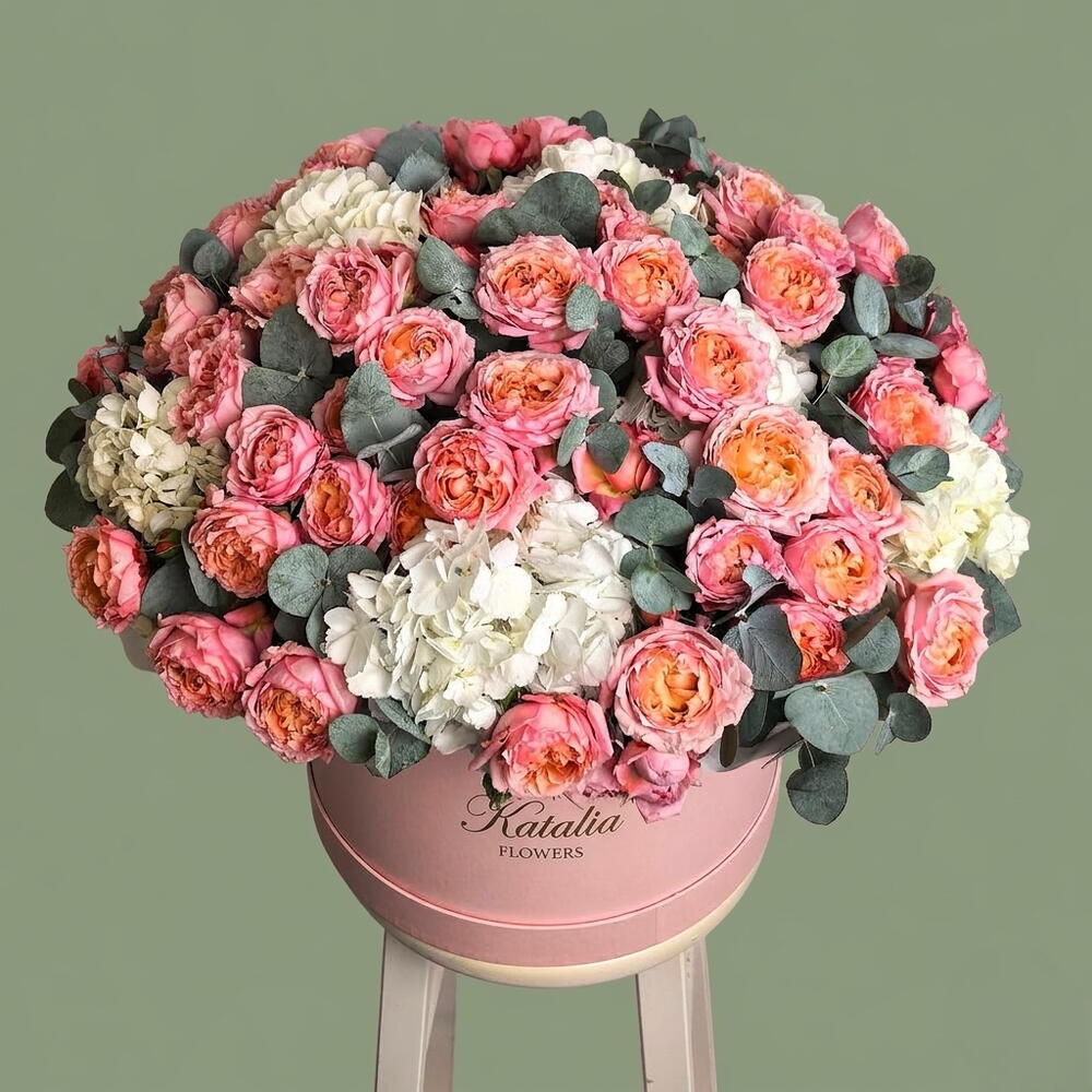 استمتع بجمال باقة زهورنا في صندوق. تجمع هذه الباقة الفاخرة بين سحر 9 زهور هيدرانجيا بيضاء منعشة وأناقة 20 وردة صغيرة رقيقة. تتخلل الأزهار 10 أغصان من أوراق الكينا العطرة، مما يضفي على الباقة لمسة من الرقي الفريد. تم تنسيق كل هذه العناصر بعناية في صندوق كبير وربطها بثلاثة أشرطة من الساتان، مما يجعلها عرضًا أنيقًا لفن تنسيق الزهور. مثالية للتعبير عن مشاعرك بأناقة ورقي، أو لإضافة لمسة من سحر الطبيعة إلى مساحتك.