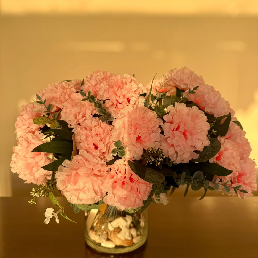 باقة مع قرنفل صناعي بدون مزهرية