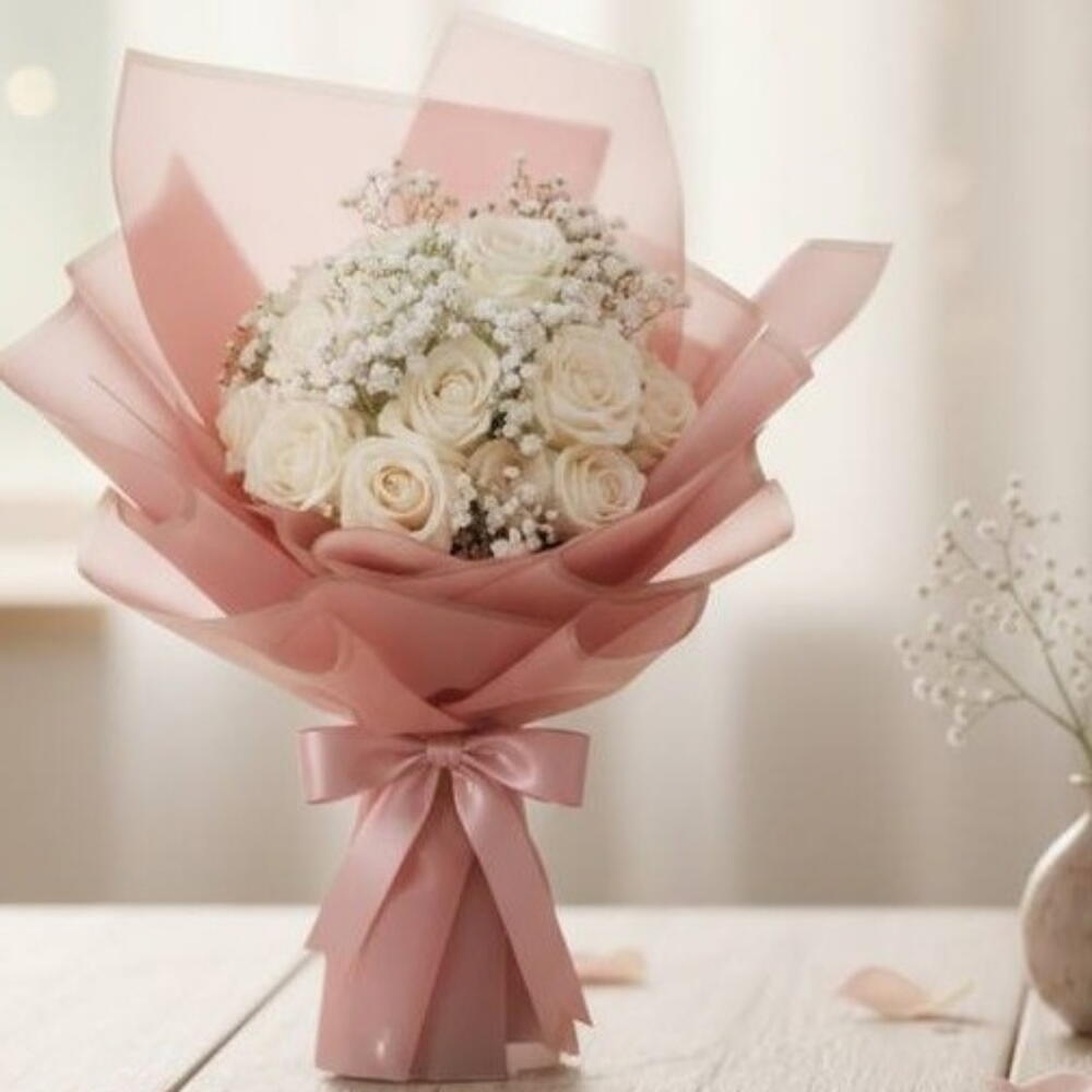 وردة بيضاء - 20 قطع جيبسوفيلا - 5 قطع