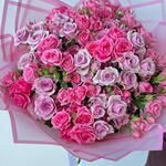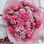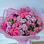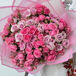 عبّر عن مشاعرك بأناقة مع باقة الورود الفاخرة بلونها الوردي الفاتح، وهي باقة رائعة منسقة يدويًا تضم أجود أنواع الورود الوردية والبنفسجية. صُممت هذه الباقة بتغليف وردي ناعم متعدد الطبقات لإطلالة عصرية رومانسية، وهي مثالية للاحتفال بالذكرى السنوية، وأعياد الميلاد، وحفلات الزفاف، وعيد الحب، وعيد الأم، أو أي مناسبة تستحق لمسة جمالية من الزهور. صُممت هذه الباقة خصيصًا لعشاق الرومانسية الخالدة وألوان الباستيل الناعمة، لتضفي لمسة رقيقة على أي احتفال. خيار رائع لتقديمها كهدية أو لعرضها في منزلك.