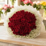 وردة حمراء - 100 قطع جبسوفيلا بيضاء - 20 قطع