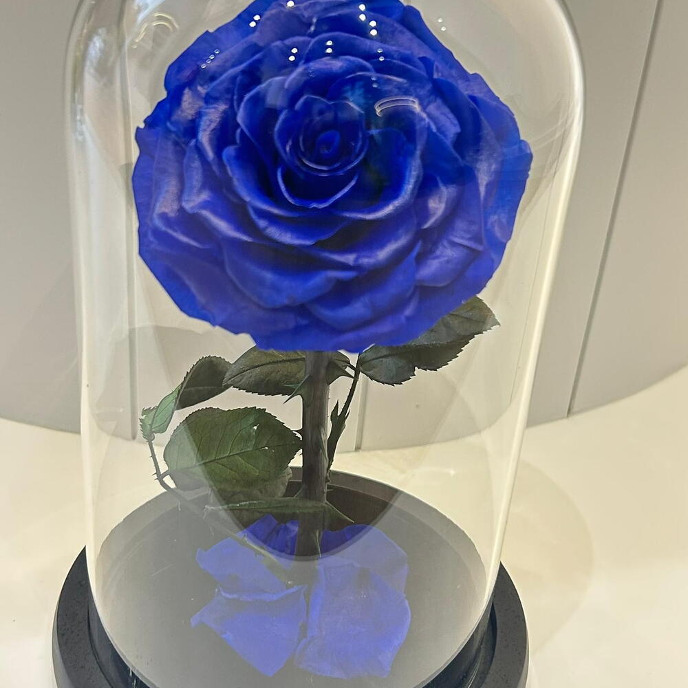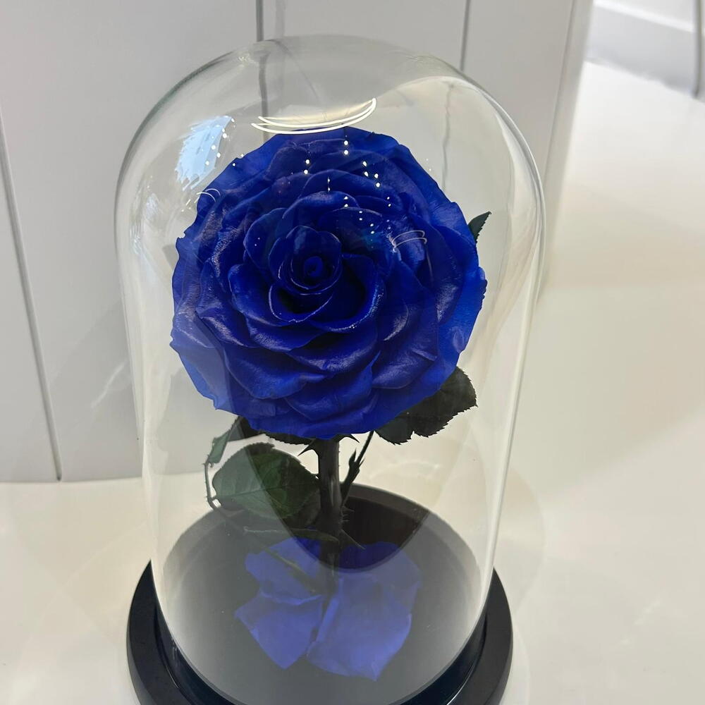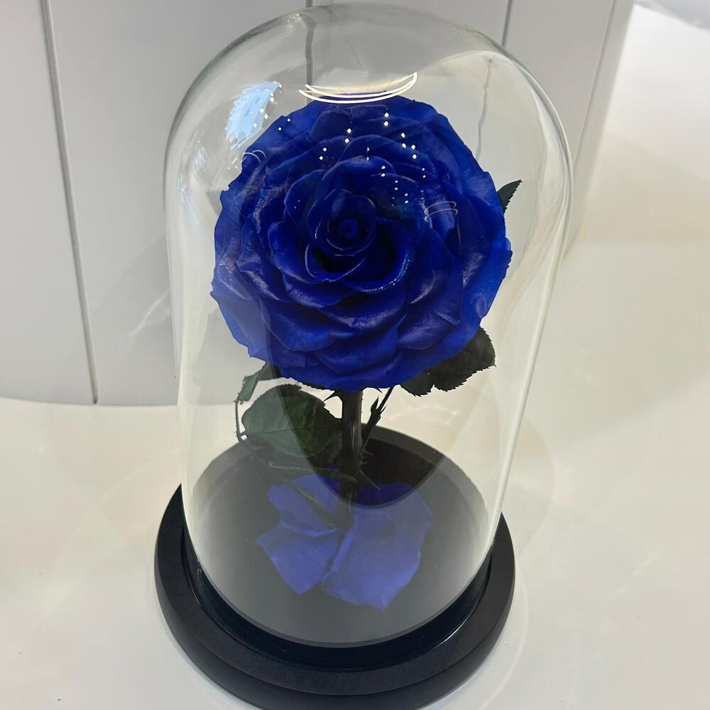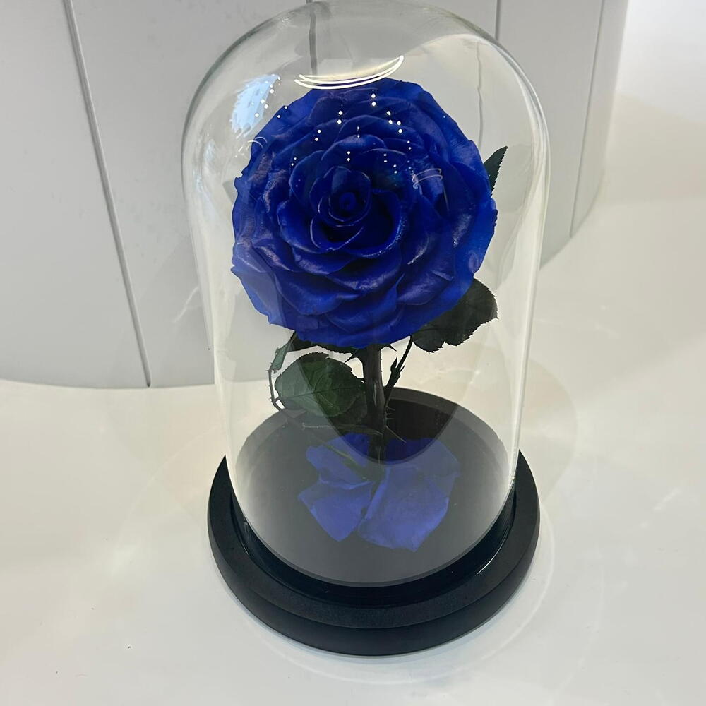 قبة زجاجية - 1 قطع وردة زرقاء محفوظة - 1 قطع