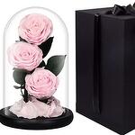 مزهرية قبة زجاجية مع ثلاث وردات وردية