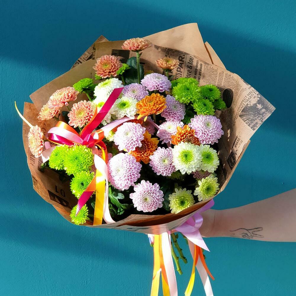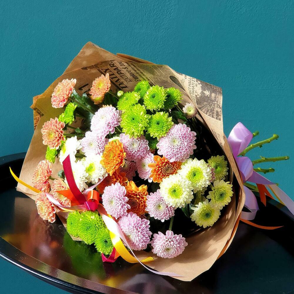 باقة رائعة من أقحوان سانتيني متعدد الألوان وطويلة الأمد. أقحوان سانتيني دائمًا ما يجعلك تبتسم ويرفع من معنوياتك. زهور الأقحوان هدية ممتازة لوالدتك أو لزملائك وطريقة لإظهار المودة.