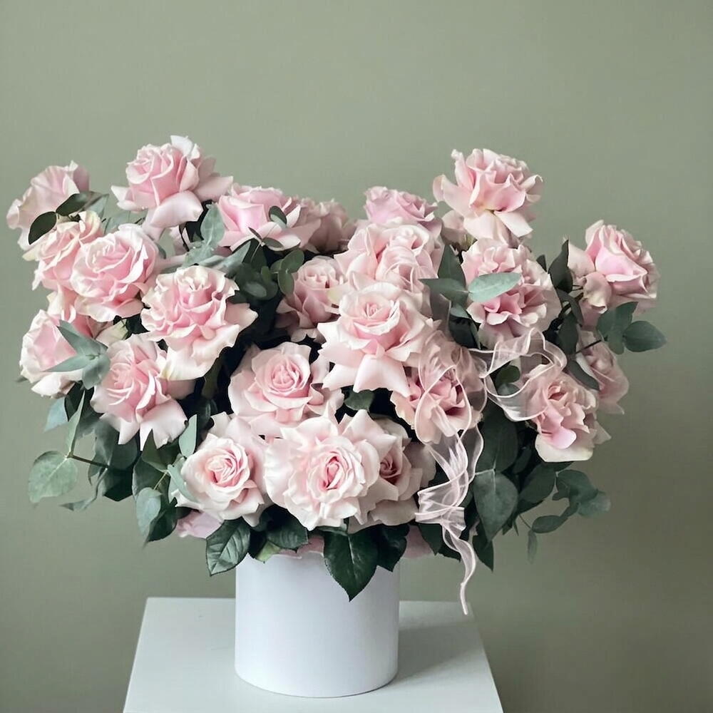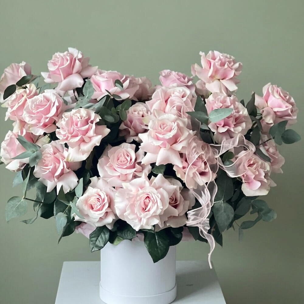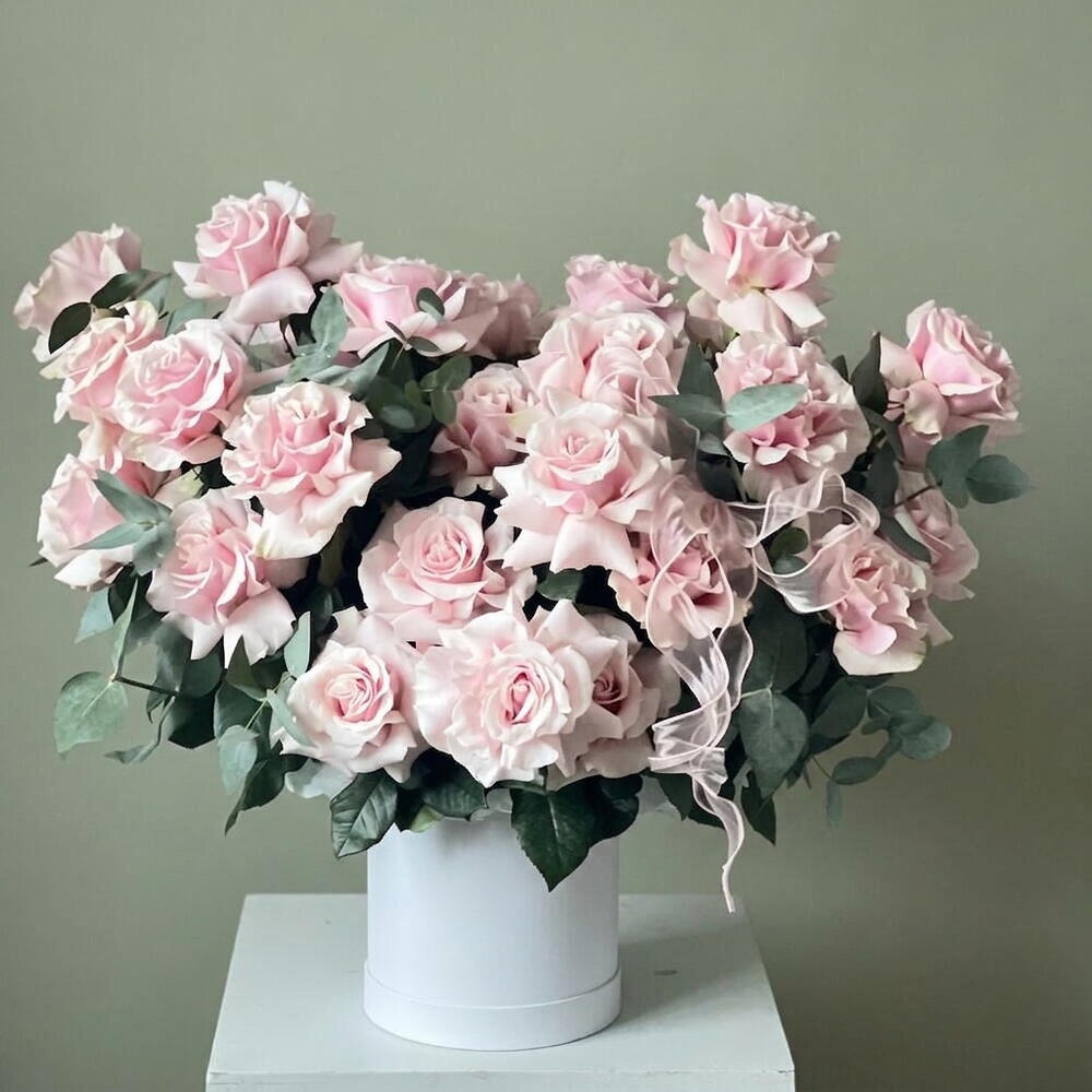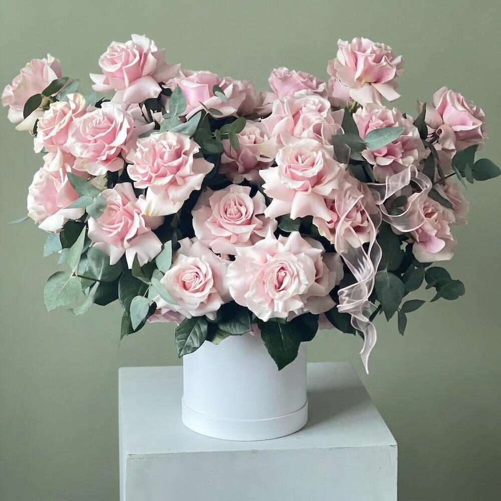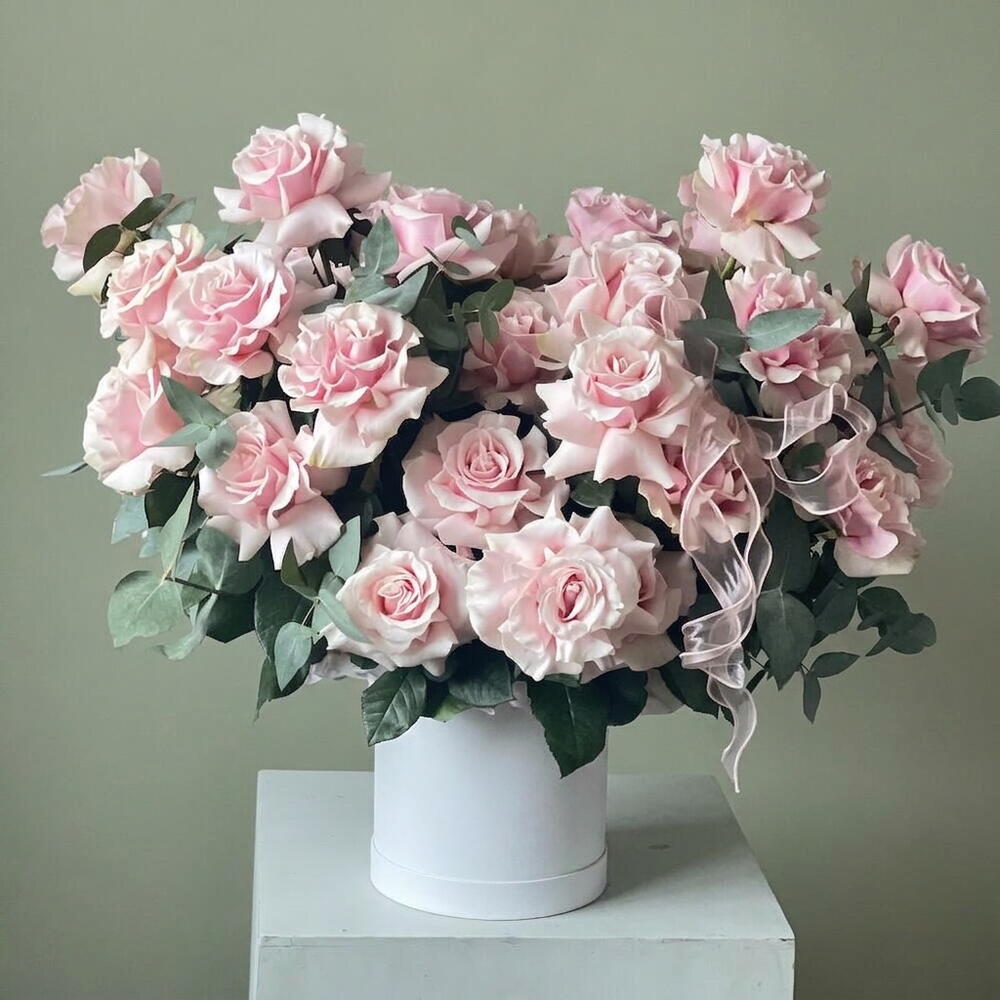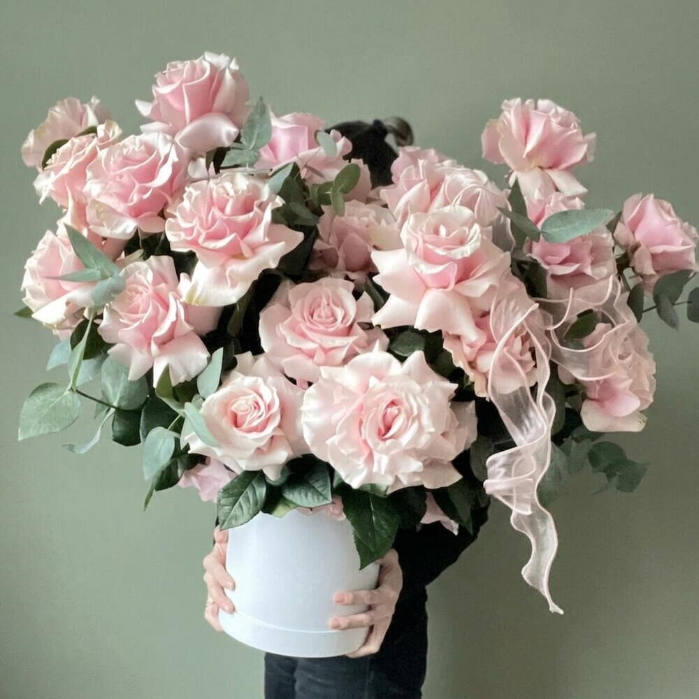 انغمس في جوهر الأناقة مع باقتنا «زهور في صندوق». تتضمن تشكيلتنا 10 أغصان من الأوكالبتوس المعطّر و49 وردة فرنسية فائقة الجمال، جميعها مرتبة بشكل جميل في علبة قبعة أنيقة. تم تصميم هذا المزيج اللافت ليلتقط جوهر الرقي والأناقة الخالدة. الهدية المثالية لأولئك الذين يقدّرون أرقى متع الحياة.
