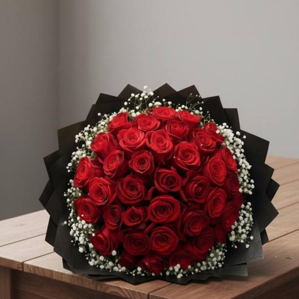 انغمس في السحر الآسر لهذه الباقة المونو، المصممة ببراعة من 45 وردة حمراء فاخرة تجسد الحب والشغف. ومزينة بسحر 10 أغصان من الجبسوفيلا البيضاء المتلألئة، هذه الباقة ليست مجرد هدية، بل تعبير دافئ عن المشاعر محوّل إلى تنسيق زهري ساحر. إنها مثالية للتعبير عن أعمق مشاعرك في مناسبة خاصة أو حتى في يوم عادي مليء بالحب.