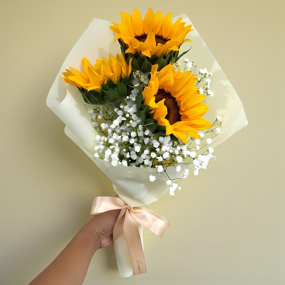 Des - باقة جميلة وأنيقة من 3 أزهار دوار الشمس.