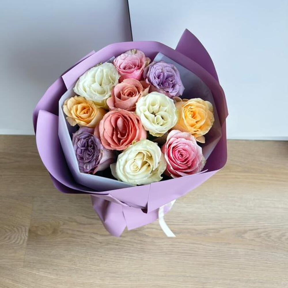 باقة مربوطة يدويًا مذهلة تضم ورودًا طازجة فاخرة بدرجات الباستيل الناعمة من الوردي الخجول والخوخي والكريمي والأصفر والخزامى. مغلفة بشكل جميل بورق أنيق بلون الخزامى، هذا الترتيب الزهري الفاخر مثالي لأعياد الميلاد وذكرى الزواج والإيماءات الرومانسية أو الاحتفالات الخاصة. كل وردة مختارة بعناية لنضارتها ولونها الزاهي، مما يخلق باقة رقيقة ولافتة للنظر تنقل الحب والتقدير والفرح. مثالية للإهداء أو لإضفاء لمسة من الأناقة على أي مكان.