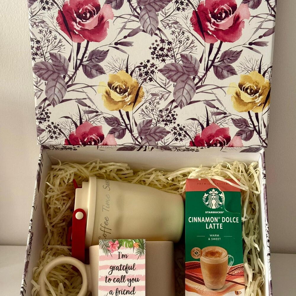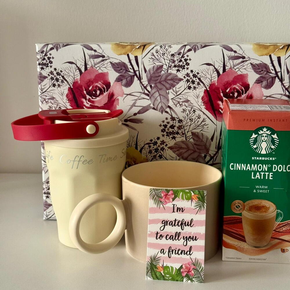 اترك انطباعًا دائمًا بهذا الصندوق الأنيق لهدايا القهوة، المُنَسّق بعناية لأسلوب الحياة في الإمارات العربية المتحدة حيث يرتكز الإهداء على العرض والجودة والراحة. مصمم كمجموعة فاخرة جاهزة للإهداء، يجمع هذا الصندوق بين الجماليات العصرية والعملية اليومية—مثالي للمهنيين المشغولين، والهدايا في اللحظات الأخيرة، والمفاجآت الأنيقة. Inside the box: • كوب قهوة معزول فاخر مزود بحزام حمل (مثالي لأسلوب الحياة أثناء التنقل) • كوب سيراميك أنيق بلون محايد فاخر • أكياس ساشيه ستاربكس سينامون دولس لاتيه – طعم ناعم ودافئ ومغري • بطاقة تقدير أنيقة برسالة صادقة من القلب • صندوق هدايا صلب فاخر بنقشة زهرية وحشوة ورقية مبشورة فاخرة ⸻ لماذا يحبه عملاء الإمارات: • 🎁 جاهز للإهداء – لا حاجة للتغليف (مهم لثقافة الإهداء السريعة) • 🚚 مثالي للتوصيل في اللحظات الأخيرة في جميع أنحاء الإمارات • 💼 مثالي للهدايا المؤسسية وللزملاء • 🌸 تصميم محايد وأنيق مناسب للنساء وللهدايا للجنسين • 📦 تغليف فخم يعطي إحساسًا بالقيمة العالية ⸻ مثالي لـ: • هدايا أعياد الميلاد • هدايا شكر • هدايا للشركات والمكاتب • هدايا للأصدقاء • مفاجآت فاخرة صغيرة