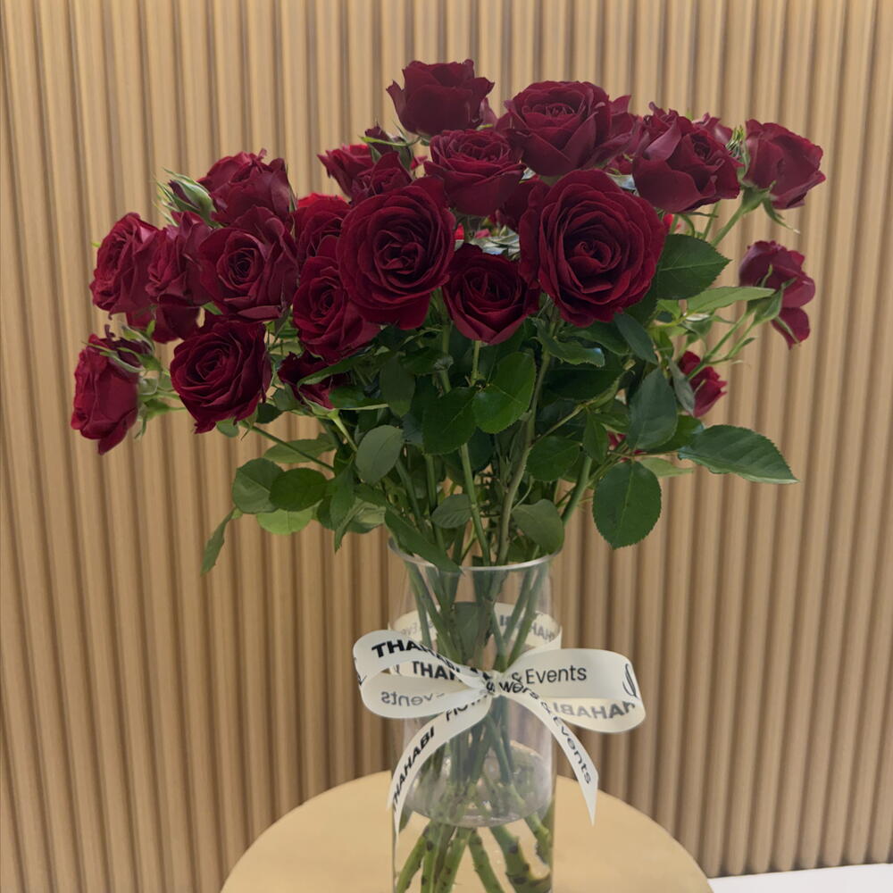 باقة "رومانسية مخملية" لدينا تتميز بمجموعة فاخرة من الورود الحمراء، مختارة بعناية فائقة لجمال لونها وملمسها المخملي. مرتبة في مزهرية زجاجية أنيقة، تجسد هذه الباقة جوهر الرقي الكلاسيكي والمشاعر الصادقة. مزينة بشريط أنيق يحمل توقيع المصمم، تُقدم هذه الباقة جاهزة لإضفاء لمسة فخمة على أي منزل أو مكتب. مثالية لـ: الحب والرومانسية | الافتتاحات الكبرى | التهنئة | الهدايا الفاخرة تعليمات العناية: للحفاظ على نضارة الزهور، غيّر الماء كل يومين وقص السيقان بزاوية 45 درجة. يُحفظ بعيدًا عن أشعة الشمس المباشرة والتيارات الهوائية.