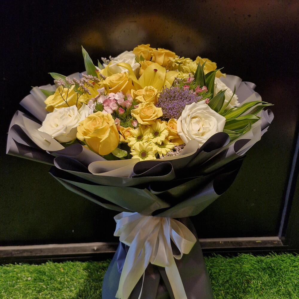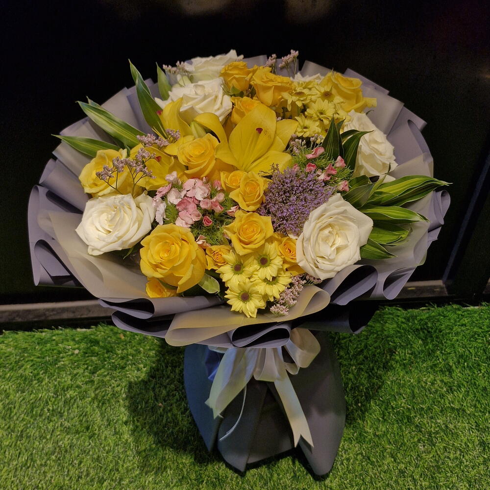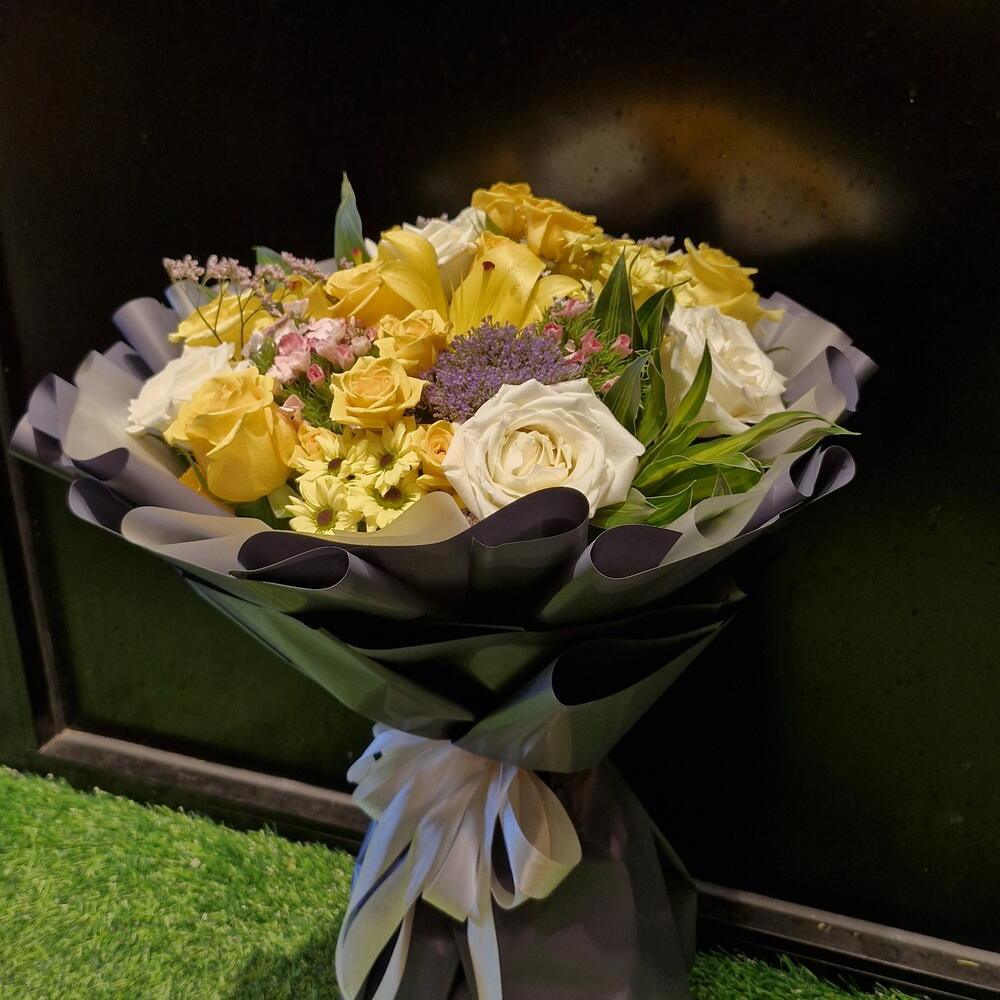 It was supposed to arrive at 3-3:30 but it was delayed until 5. I asked them to make it look fuller but they didn’t. Doesn’t look very similar to the photo
