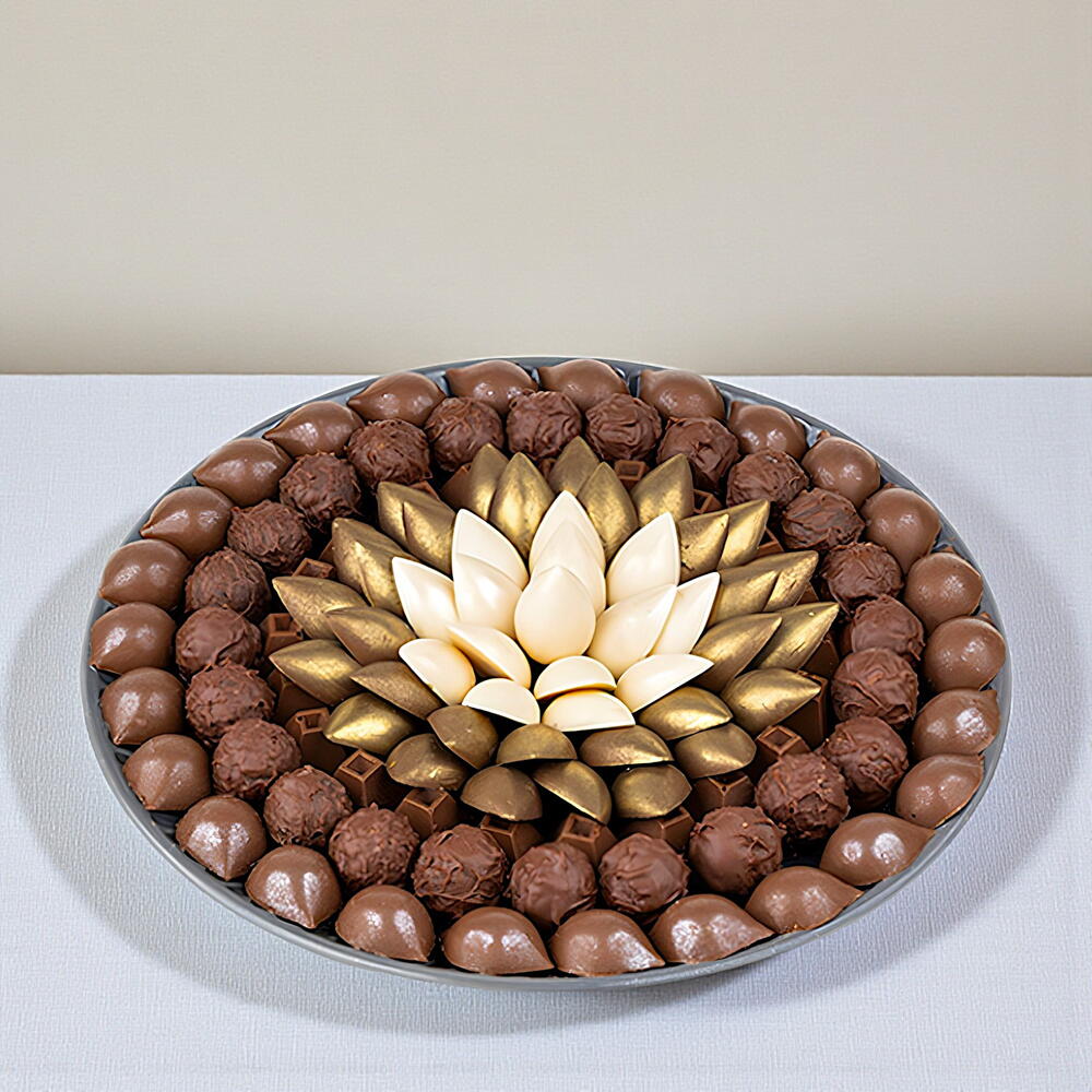 Your Gift Contains: – 15 x White Chocolate – 102 x Milk Chocolate – Flavors: Pistachio, Hazelnut, Speculoos, Peanut Butter and Roche – Chocolate Weight: Approx 1.6kg – Tray Dimension: 31x31cm Handling and Storage: – Keep away from direct heat and sunlight – Best stored between 12-18 °C – Not suitable for those allergic to seeds, nuts, dairy Allergy Info: CONTAINS NUTS AND NUTS BASED PRODUCTS