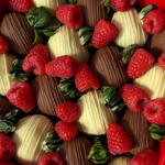 8 Belgian milk chocolate covered strawberries 8 Belgian white chocolate covered strawberries 21 fresh raspberries