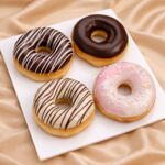 A delightful assortment of soft, fluffy donuts topped with rich chocolate glaze, white chocolate coating, delicate chocolate drizzles, and colorful sprinkles—perfectly crafted for a sweet indulgence in every bite.