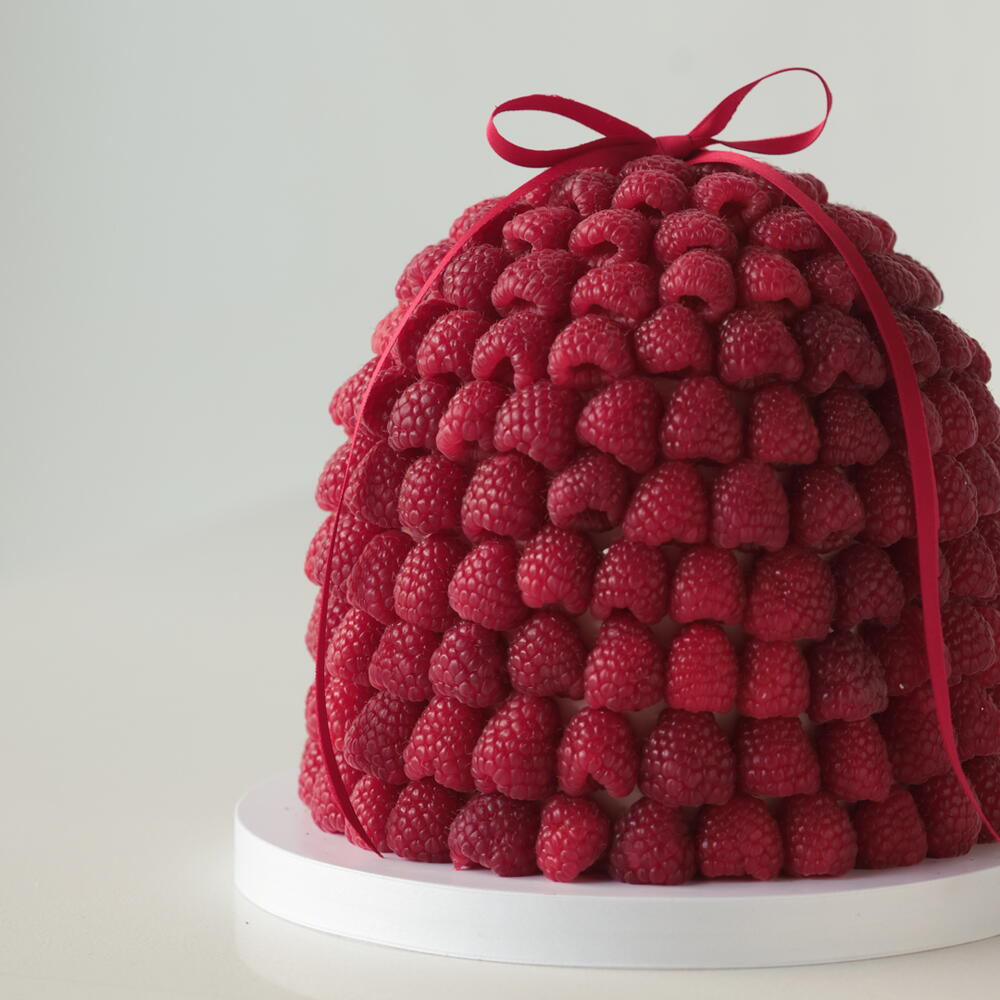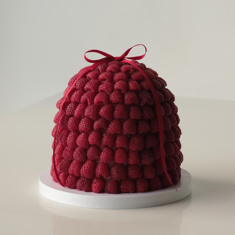 Our M cakes weighing 2.5 kg are designed for 9-11 people. The “Berry Hill” cake is an eye-catching and elegant dessert, fully covered with fresh raspberries and tied with a satin ribbon. Box size: 30*30*34cm