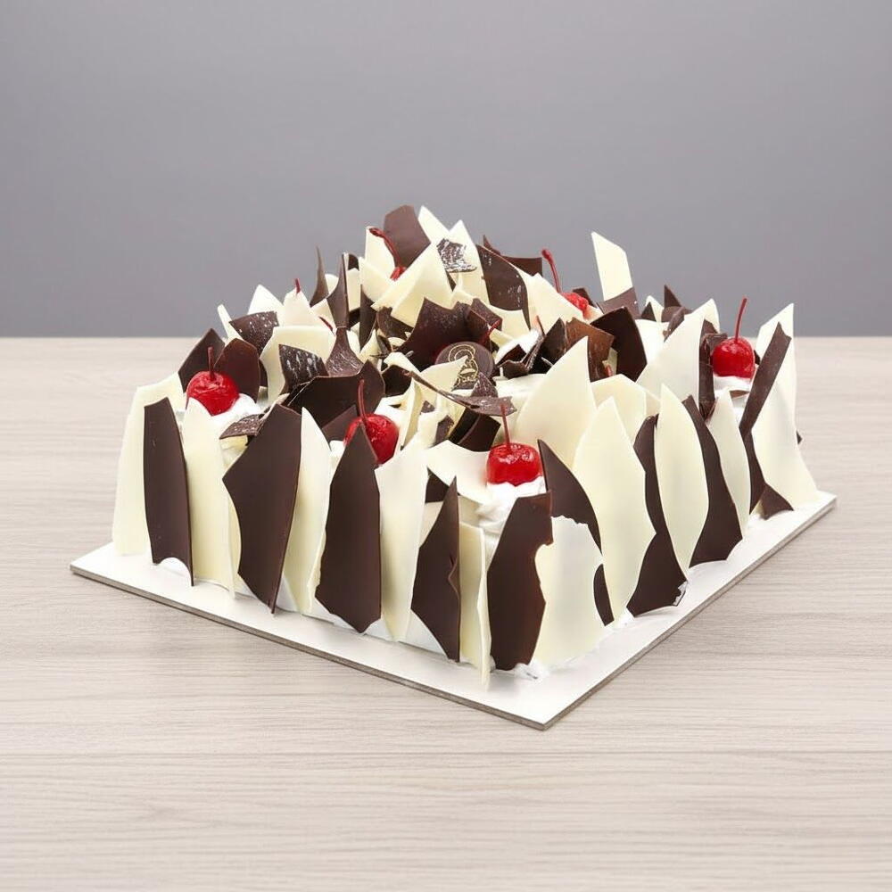 Ever wished you could have night and day on the same fork? Say hello to the Black--White Forest Symphony—our love letter to classic European patisserie, remixed for 2025 taste buds. What’s inside the slice? Silky vanilla sponge that feels like first-light optimism ☀️ Moody dark-chocolate sponge that hits with midnight intensity 🌙 Clouds of fresh whipped cream (no shortcuts, no margarine—ever) Juicy black cherries steeped in their syrup for that “pop” moment Shower of dark white chocolate curls—because balance deserves bling Fusion done right. Rich + light, bitter + sweet—every bite is yin-yang harmony. Hand-crafted daily. Baked at dawn, assembled by pastry pros before the city even scrolls IG. Photo-ready centerpiece. High-contrast layers glow on camera—hello viral birthday post. Same-day delivery across Dubai JLT. Cake chill-packed, ETA tracked—zero melt drama. Free golden cake topper that reads “Celebrate” in cursive—old-school flair meets modern vibe. Serving vibe 8–10 generous slices. Level-up with a scoop of vanilla bean gelato or a shot of cold-brew espresso.