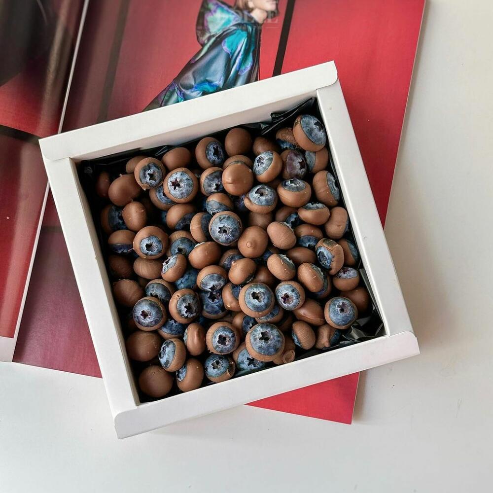 Luxury Box of Chocolate-Covered Blueberries – 450 g A refined twist on classic chocolate gifts: fresh juicy blueberries hand-dipped in smooth Belgian milk chocolate. A perfect harmony of fruity freshness and velvety sweetness, beautifully packed in an elegant white gift box. 🍇 Premium blueberries coated in Belgian chocolate 🍫 Silky milk chocolate shell 🎁 Luxury box presentation (350 g) 🚚 Same-day delivery in Dubai Perfect for birthdays, romantic surprises, anniversaries, or a thoughtful gourmet gift.