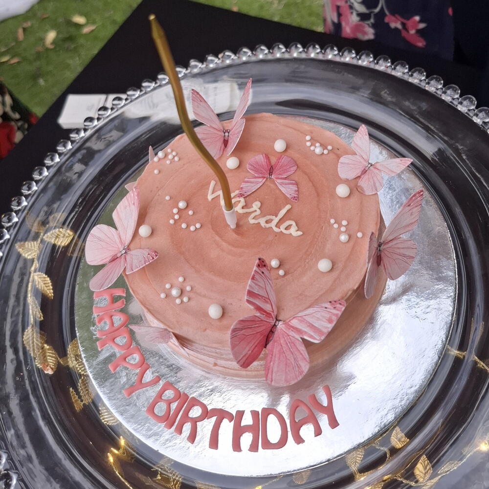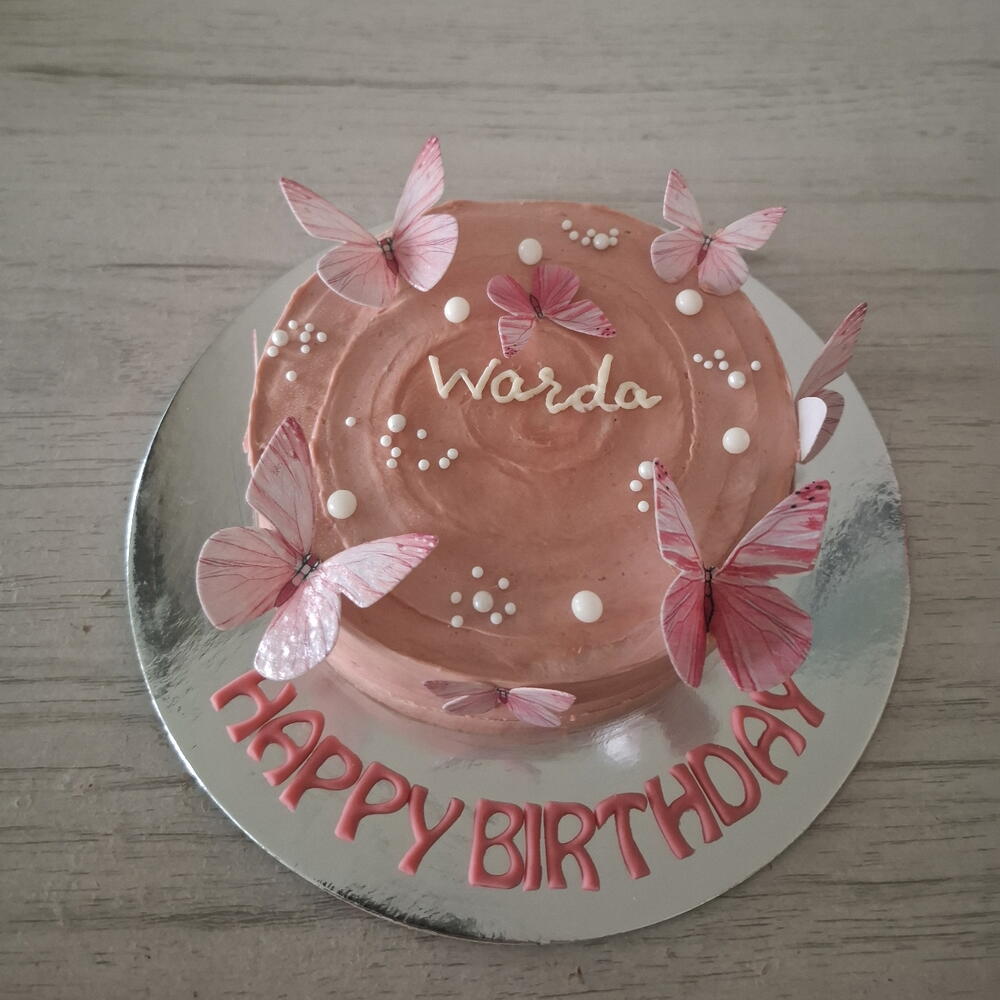 Elegant butterflies and pearls cake to make your celebration memorable U cant only adore but also can eat the butterflies .. Inside is soft moist fluffy sponge Layered in delicious flavoured frosting
