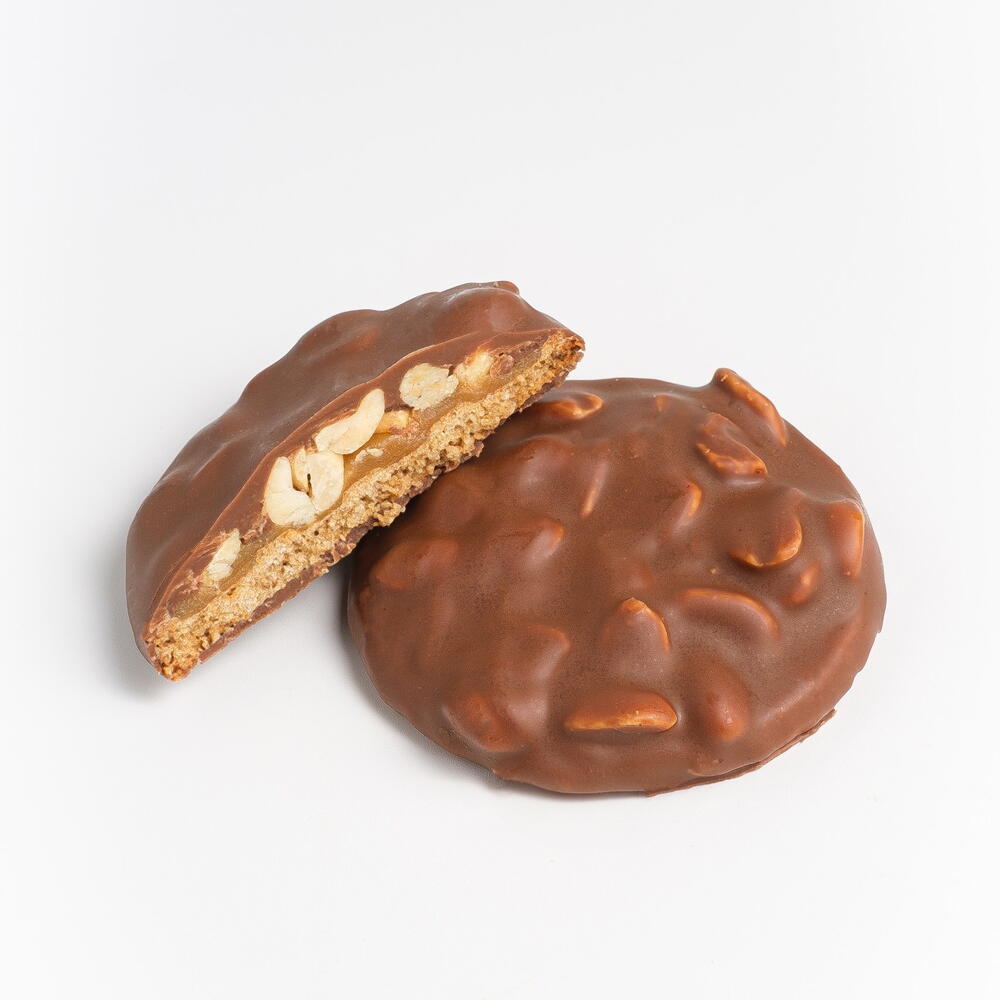 Refined sugar-free, vegan-friendly, lactose-free oat cookies made with date syrup, topinambur and chicory syrup, roasted peanuts, and rich cocoa, with a naturally caramel-like flavor and a light crunch.