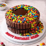 Indulge in a rich and delightful Chocolate Candy KitKat Cake, perfect for birthdays and celebrations. This delicious chocolate cake is layered with soft, moist chocolate sponge and filled with smooth chocolate cream, finished with a glossy chocolate ganache on top. The sides are beautifully decorated with crunchy chocolate wafer bars and topped with colorful chocolate candies that add a fun and vibrant touch. This cake is a favorite for kids and adults alike, combining creamy chocolate flavor with a satisfying crunch in every bite. Ideal for birthday parties, surprise celebrations, and sweet moments with family and friends. Flavor: Chocolate Decoration: Chocolate wafer bars and colorful candy topping Occasion: Birthday, celebration, kids party Freshly prepared with high-quality ingredients to ensure great taste and premium quality.