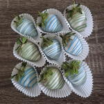 Freshly bought delicious strawberries coated in chocolate , decirated with colouful drizzles to indulge in the delightful crunch with a hintnof sweetness on scrumptious strawberries
