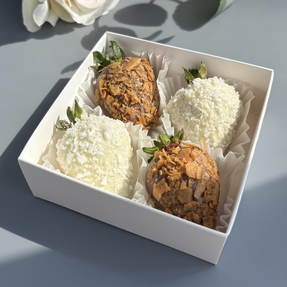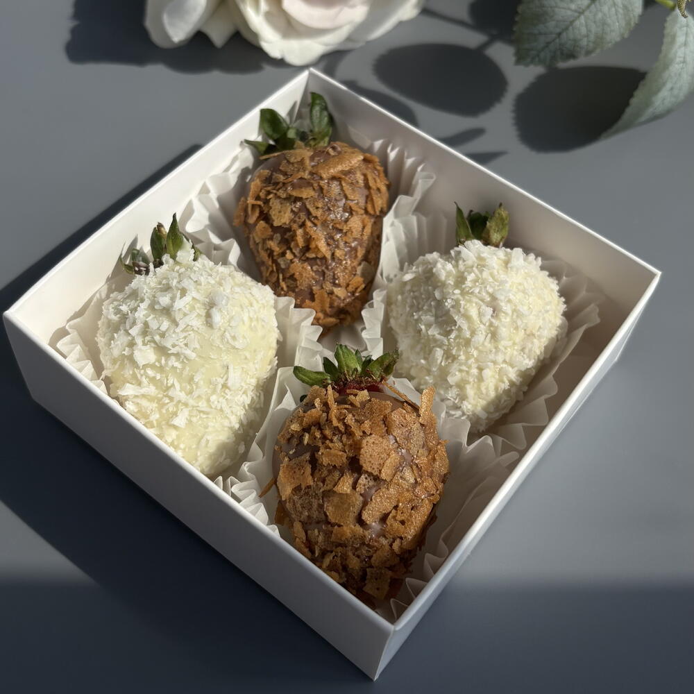 Chocolate covered strawberries, 4 berries, in white and milk chocolate, for the office, for colleagues