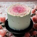 Chocolate sponge Chocolate ganache White/pink butter cream Sugar pearls (decoration)
