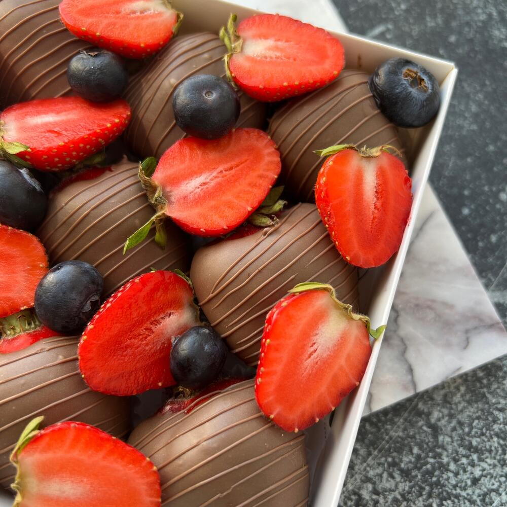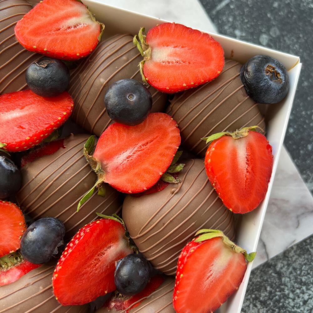 9 Milk Chocolate Covered Strawberries and Blueberries