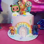 Rafello cake with vanila base cake. Its moist and fluffy vanila cake with condensed milk fillingchocochips for crunchiness inside the layers to make cake more sweeteryumminess. Cocomelon theme for the children