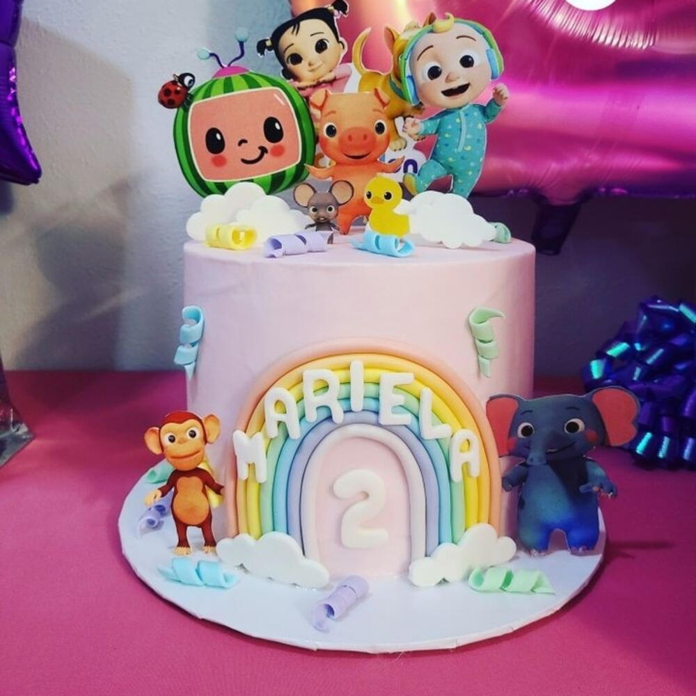 Rafello cake with vanila base cake. Its moist and fluffy vanila cake with condensed milk fillingchocochips for crunchiness inside the layers to make cake more sweeteryumminess. Cocomelon theme for the children