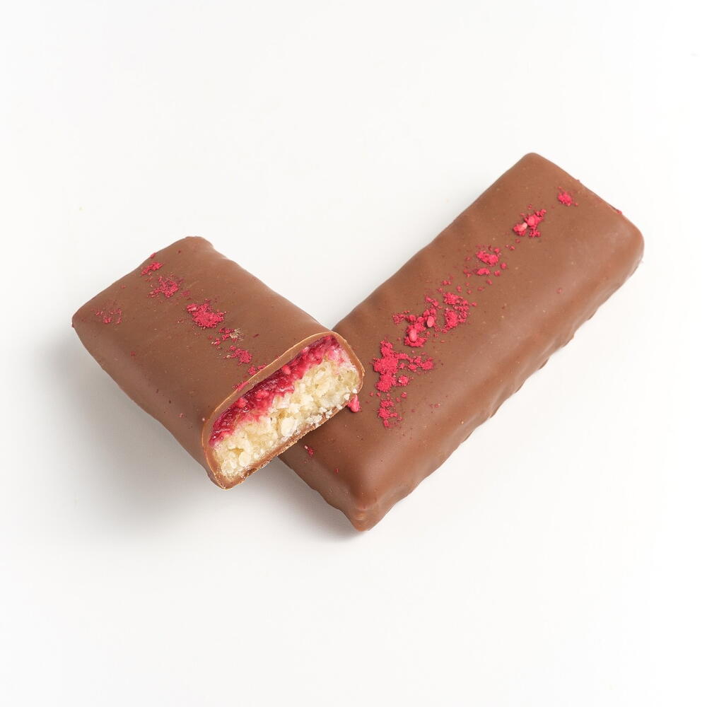 Refined sugar-free, vegan-friendly, and lactose-free bar made with coconut flakes, coconut oil, and cashews, naturally sweetened with chicory and topinambur syrup. Layered with a vibrant raspberry jam and finished with a rich cocoa-cashew glaze for a balanced, tropical indulgence.