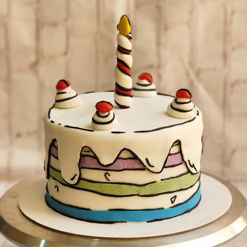 Vanilla cake with fresh strawberry, cream-cheese. Covered with fondant.