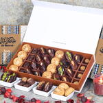 Product Details:-Assorted Stuffed Dates, Mamoul and Chocolates, Flavors - Pistachio, Cashew and Walnut, Coffee and Biscoff, Quantity - 32 Pcs, Arranged in a Beautiful Ramadan Gift Box