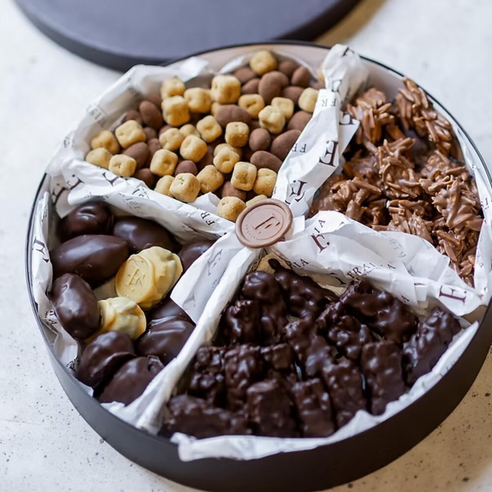 This meticulously curated selection features our four bestsellers: an assortment of chocolate-covered dates, the richness of rochers, and the irresistible charm of dragees.