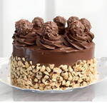 Delight in the decadence of our specialty cake, lovingly crafted from a mouth-watering blend of hazelnut cream and crunchy hazelnut nuts. Each bite is enriched with fresh cream and eggs, nestled between indulgent layers of chocolate sponge cake. Prepared with skill and passion, this cake offers a perfect harmony of crunch and creaminess for a truly unforgettable dessert experience.