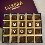 Your Gift Contains: - 20 pieces assorted Milk chocolate with I Miss You Message - Flavors: Pistachio Praline, Rice Crispy, Rocher, Speculoos, Hazelnut Praline Box Size:LxBxH: 24x18x4cm Handling and Storage: - Keep away from direct heat and sunlight - All our products are made to order and we suggest to store then in a cool dry place - Please see the bottom of the box for expiration - Suitable for vegetarians Allergy Info: PREPARED IN A FACILITY WHERE NUTS ARE USED