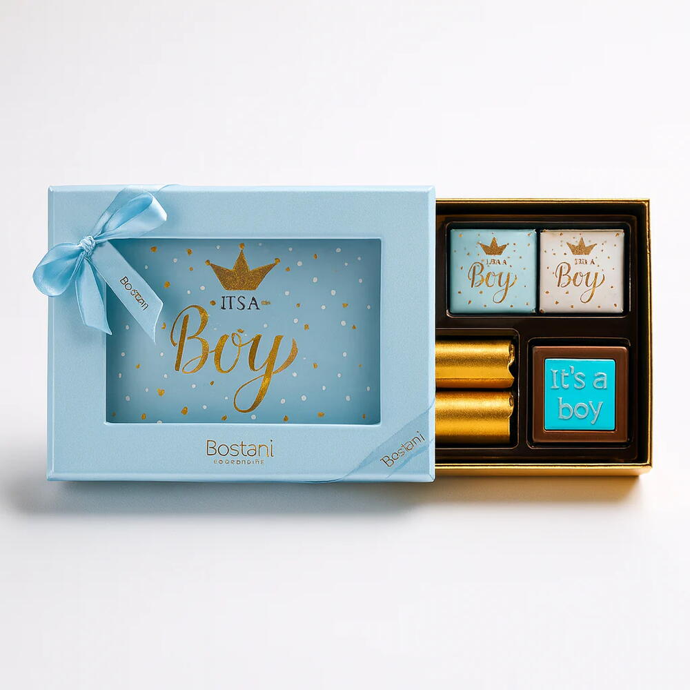 Celebrate the joy of welcoming a new baby boy with Floriva’s elegant It’s a Boy Box, a premium 16-piece chocolate collection crafted to impress. This luxurious two-layer blue gift box is beautifully wrapped with a satin ribbon and adorned with the “It’s a Boy” message on both the box and chocolates, making it the perfect gifting choice for newborn celebrations. Inside the It’s a Boy Box, each piece is wrapped in occasion-themed foil featuring delicate patterns and soft blue accents, adding a charming touch to the presentation. The assortment includes 16 delicious chocolates in biscuit, nuts, and biscuit-with-caramel flavors, offering a delightful treat for guests and loved ones. Perfect for baby showers, hospital visits, or gifting to new parents, Floriva’s It’s a Boy Box combines premium taste, elegant design, and heartfelt celebration in one unforgettable package.