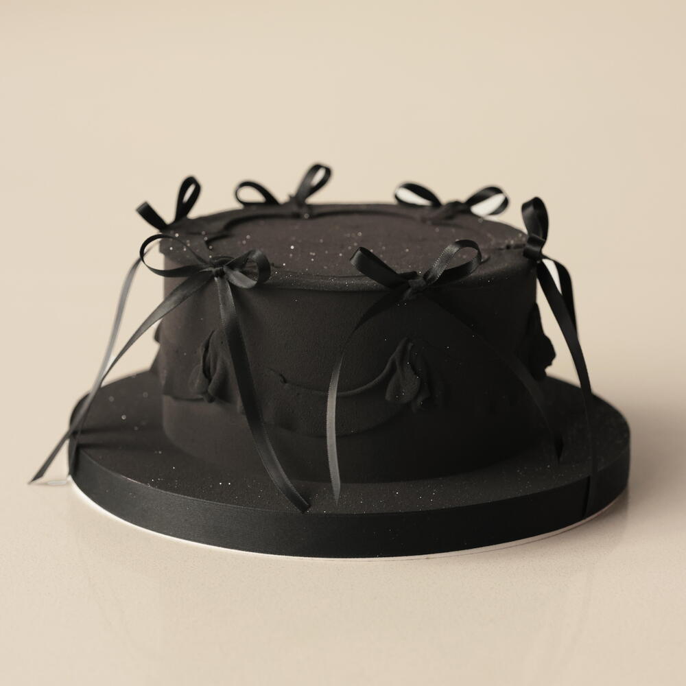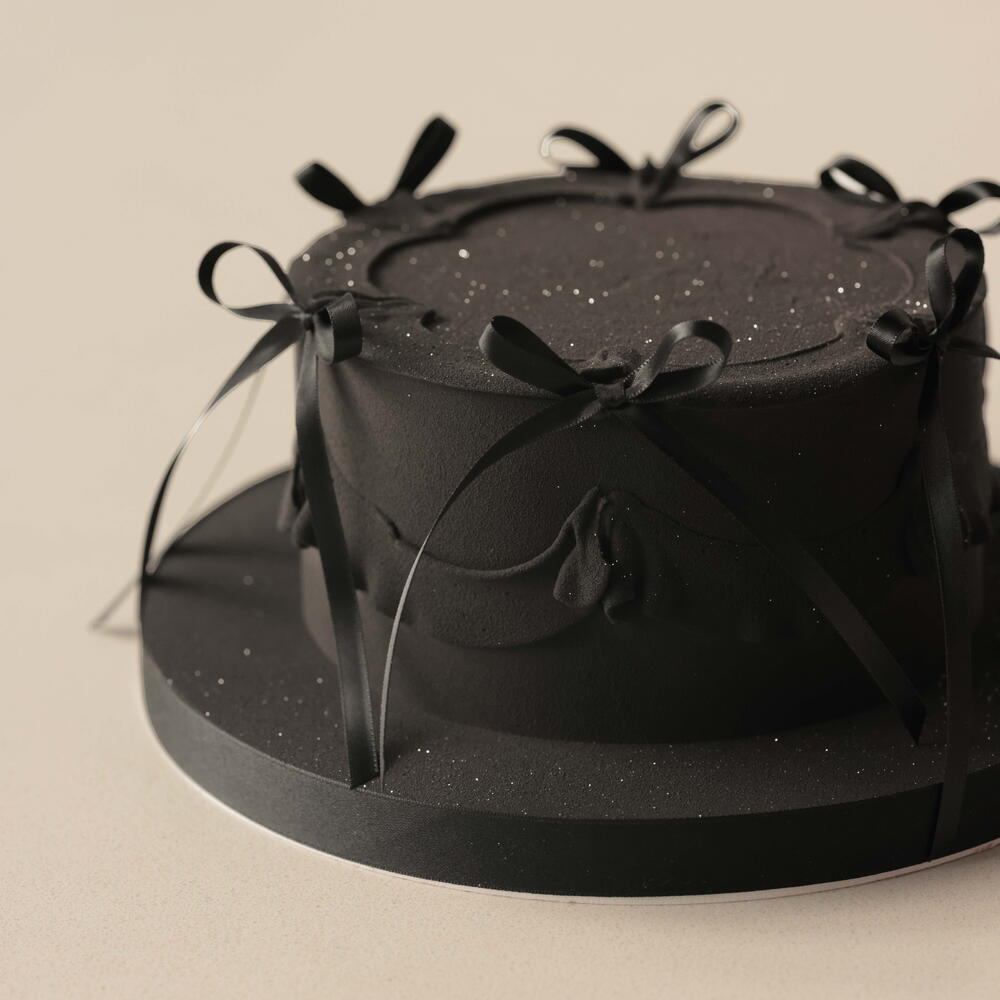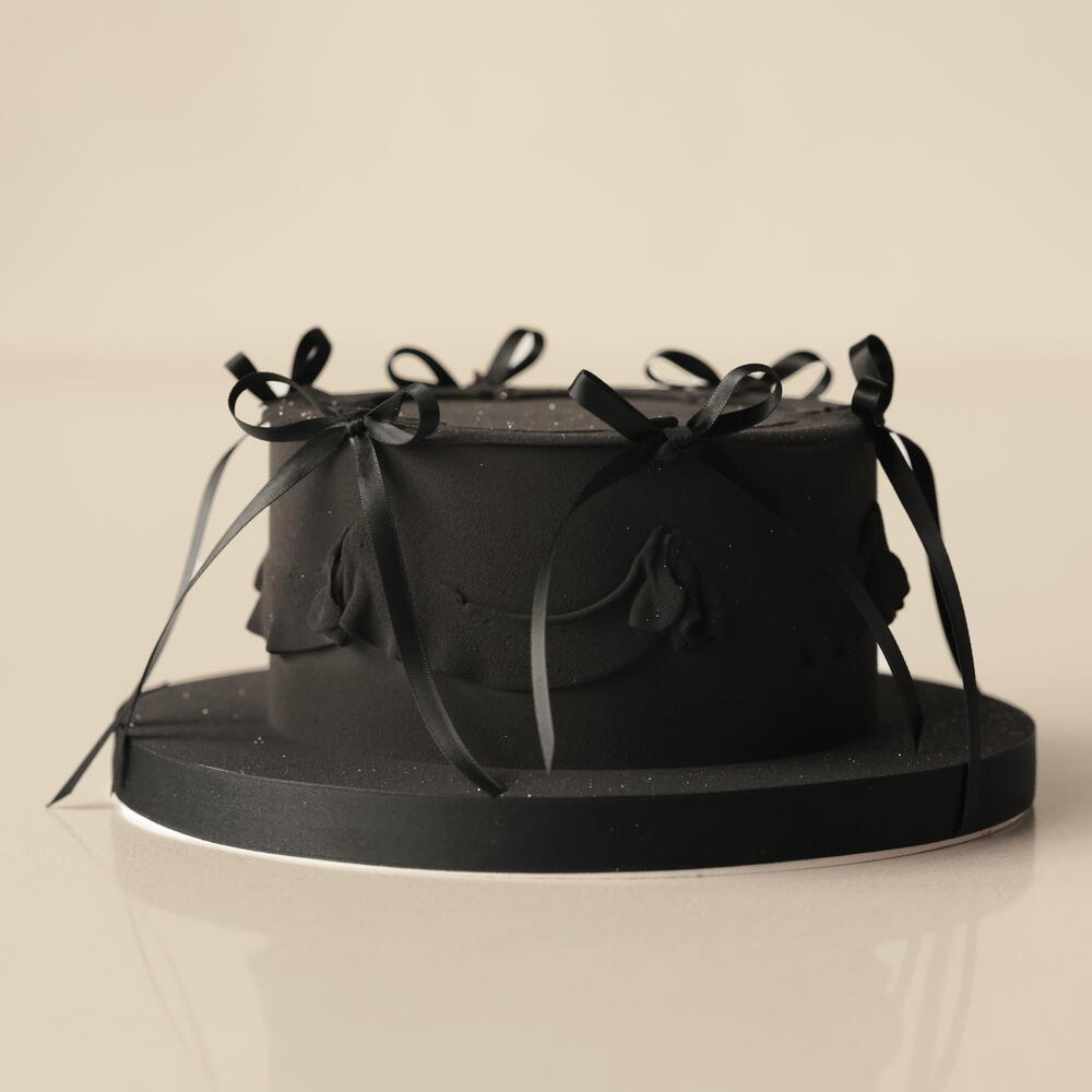 Our S cakes weighing 1.5 kg are designed for 5-6 people. The cake is adorned with delicate ganache ruffles with non-edible bows. Box size: 26*26*24cm