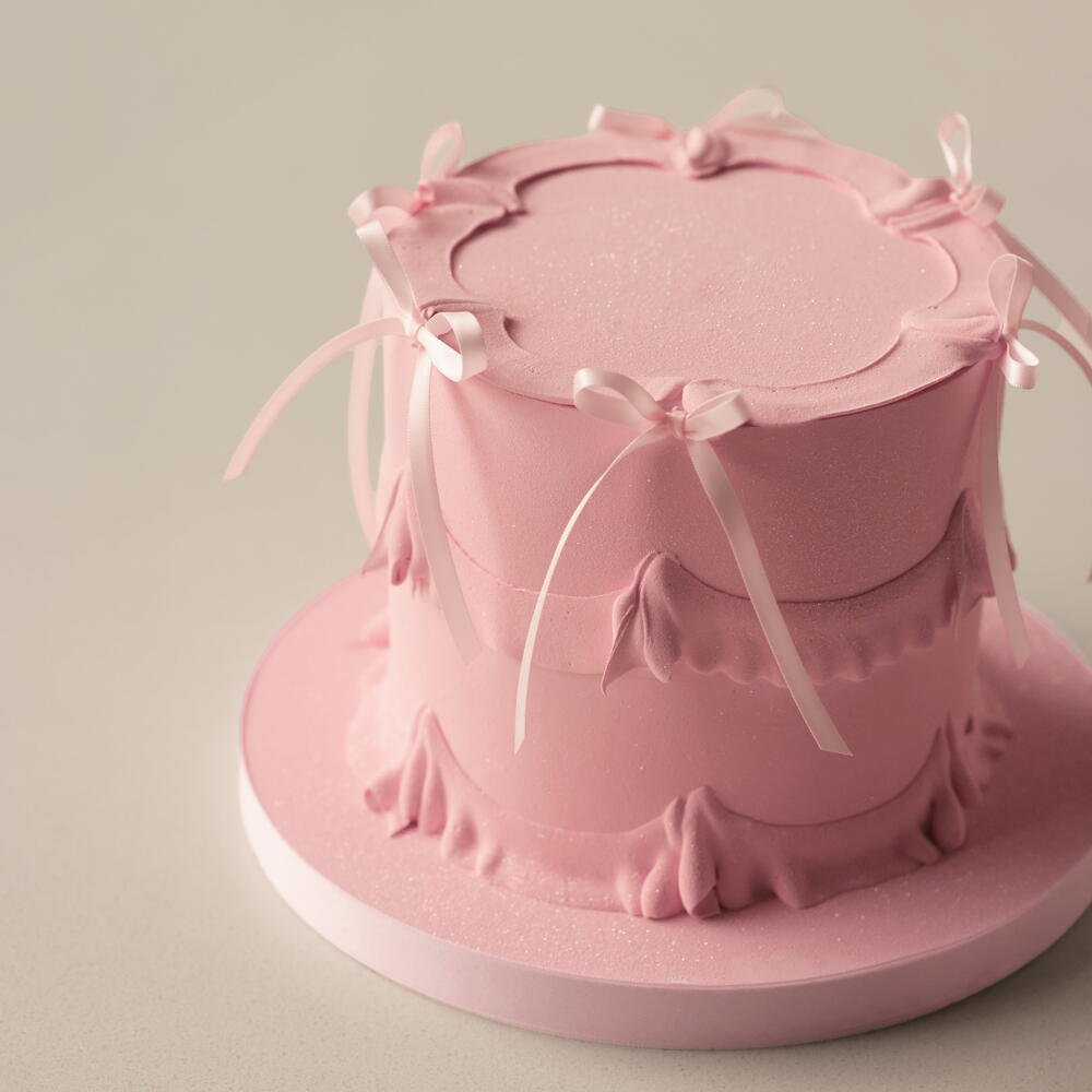 Our M cakes weighing 2.5 kg are designed for 9-10 people. The cake is adorned with delicate ganache ruffles with non-edible bows. Box size: 30*30*34cm