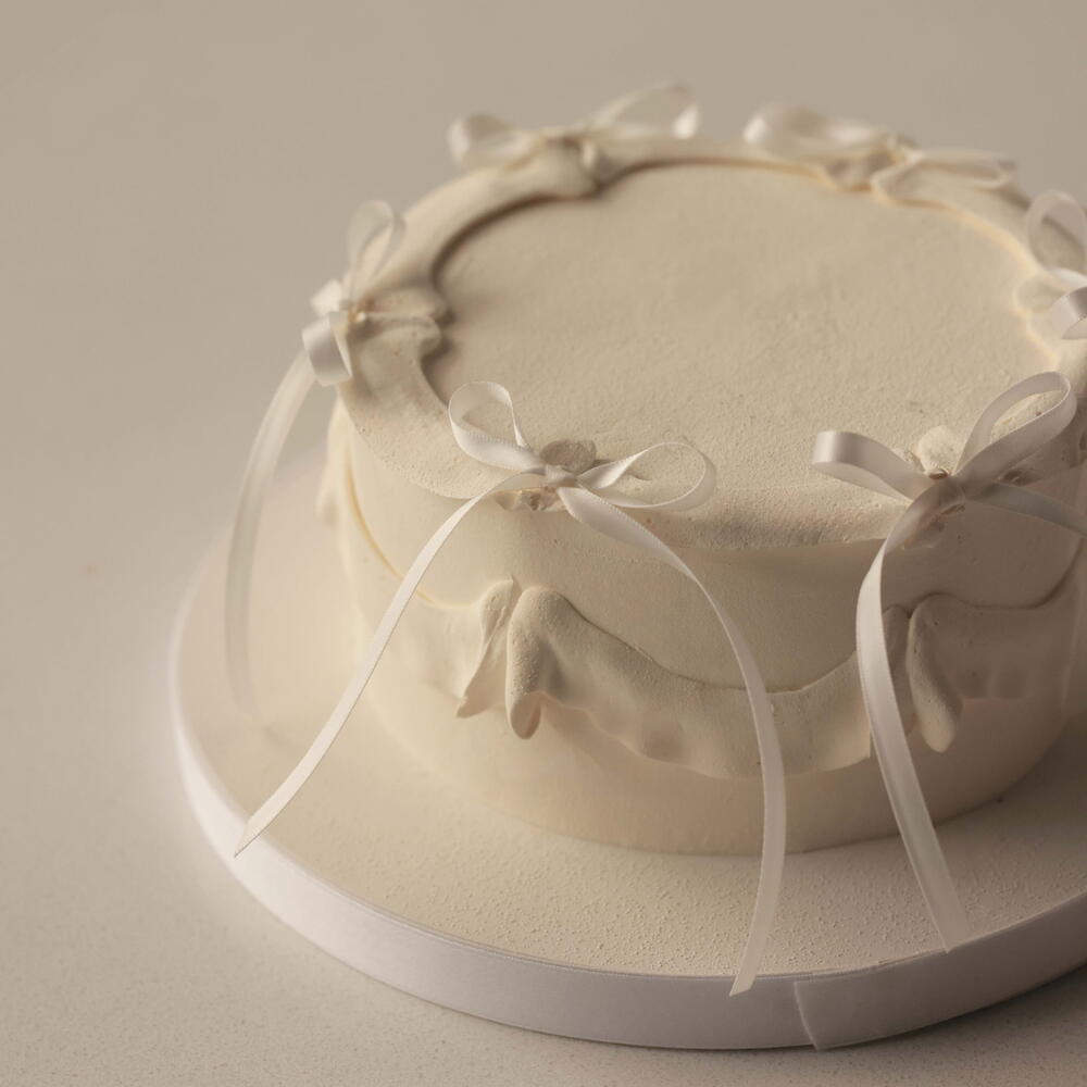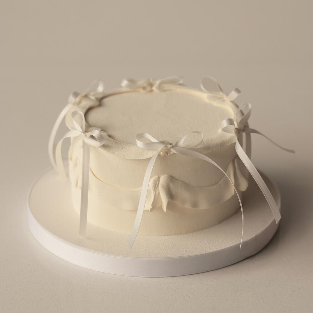 Our S cakes weighing 1.5 kg are designed for 5-6 people. The cake is adorned with delicate ganache ruffles with non-edible bows. Box size: 26*26*24cm