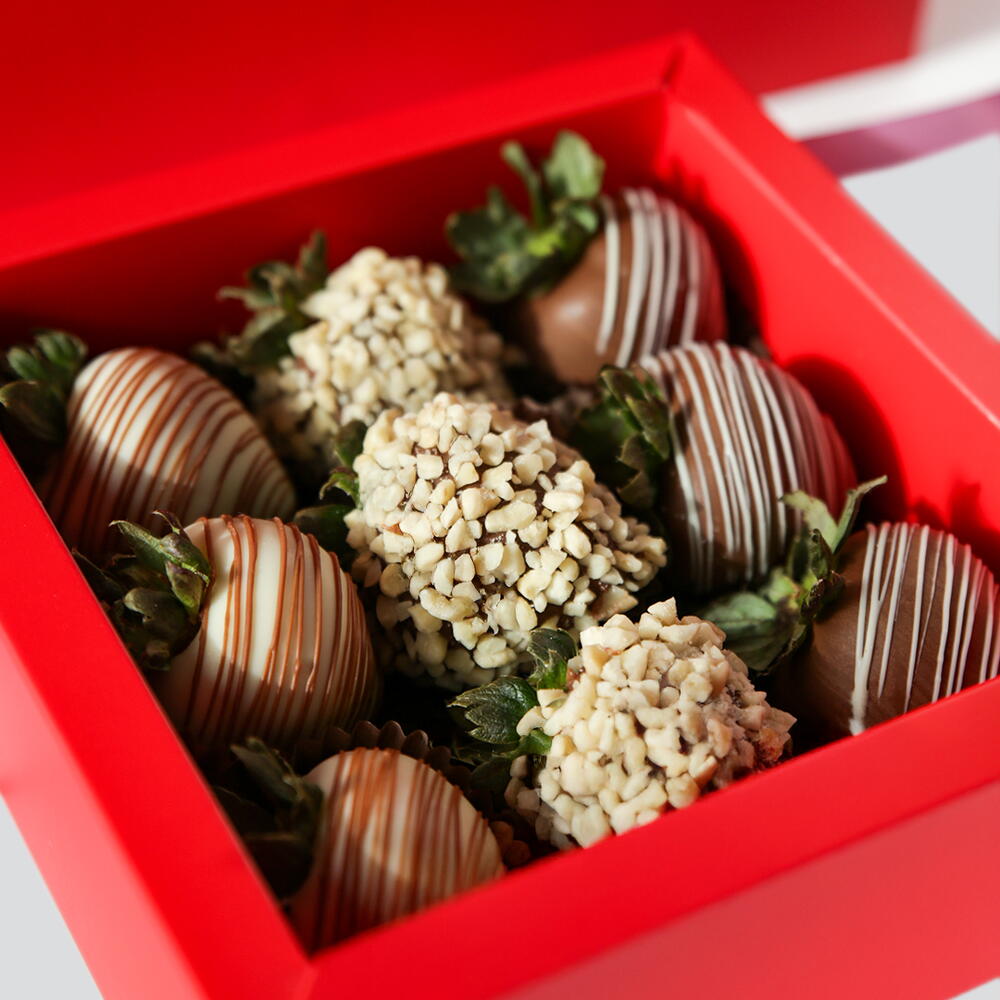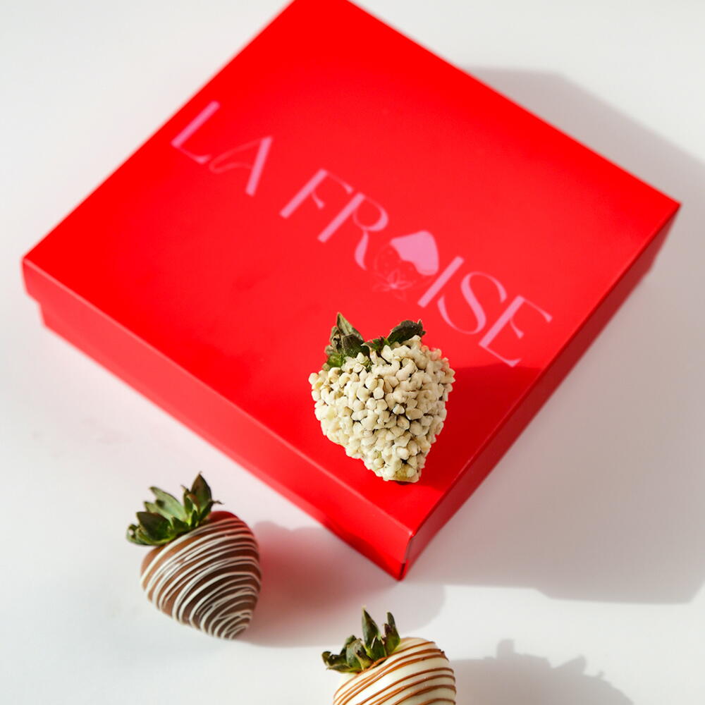 Refined and versatile, the Lina Box combines strawberries dipped in Belgian milk and white chocolate, with toppings of almonds and delicate drizzles. A thoughtful, everyday luxury that suits every occasion.