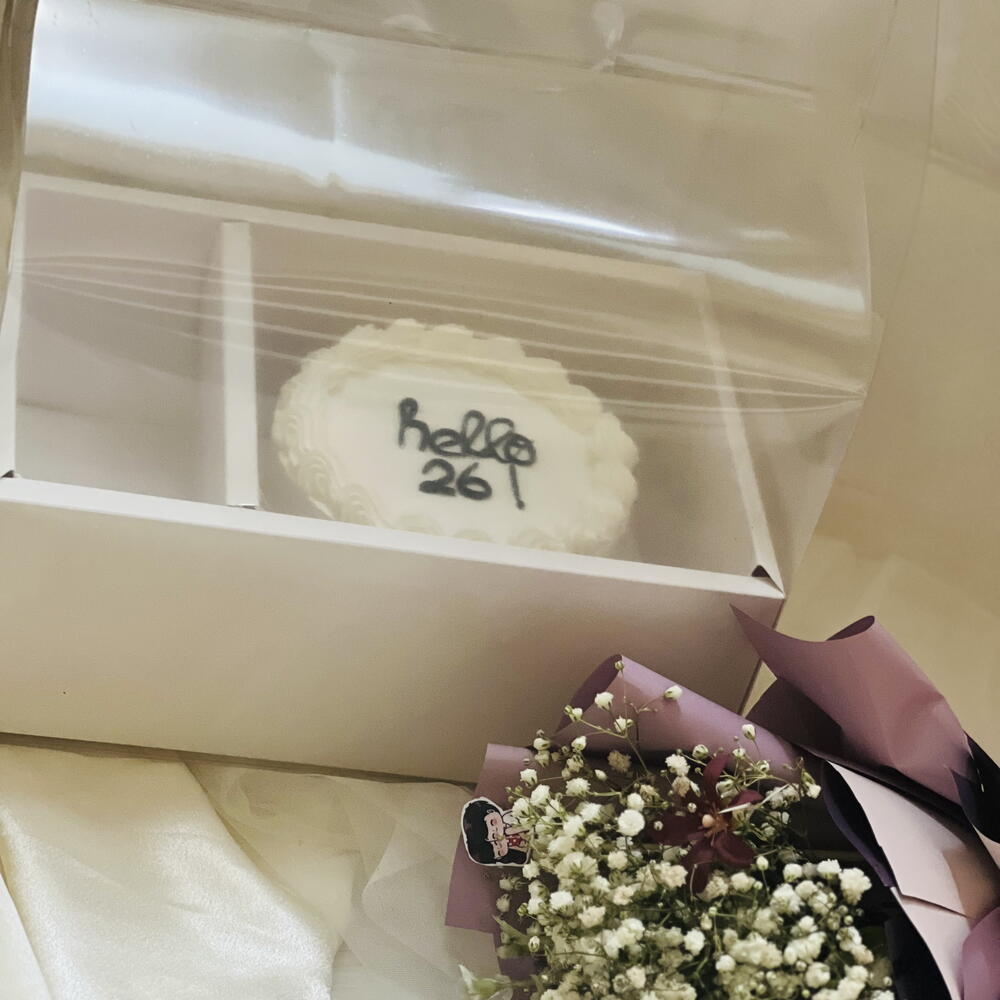 Minicake with beautiful mini bouquet