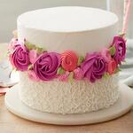 Blackforest cake... Its a Choclate cake base. Moist&fluffy cake with darkchoclate grated pieces&strawberry crush inside the layers to make cake more tastier & yummy. Rosetto in pastel colors are use for outer covering to make cake more elegant.