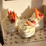 Crunchy meringue, with berries and air cream cheese. Decorated with berries